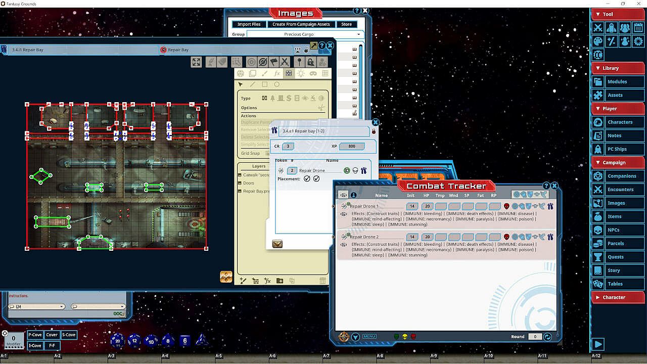 • Tokens for each encounter are all pre-placed in starting locations on the map. You can edit these on the fly.