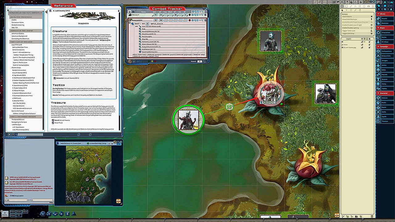 - Tokens for each encounter are all pre-placed in starting locations on the map. You can edit these on the fly.
