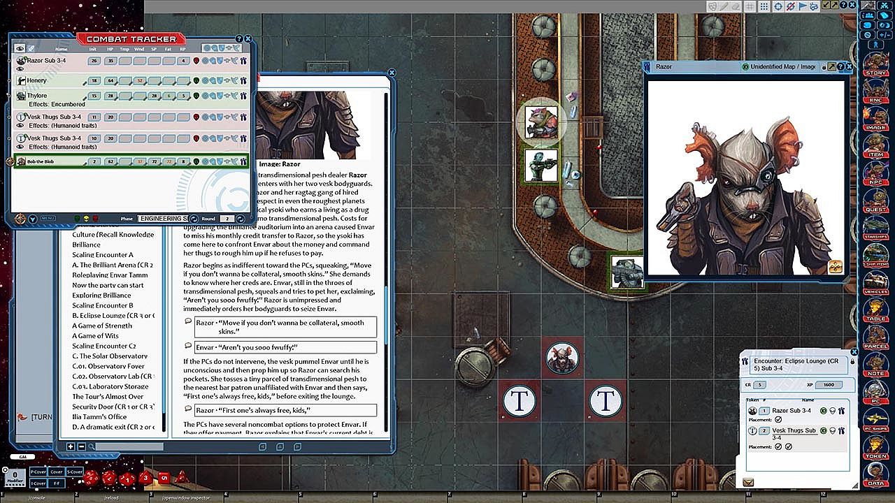 - Tokens for each encounter are all pre-placed in starting locations on the map. You can edit these on the fly.