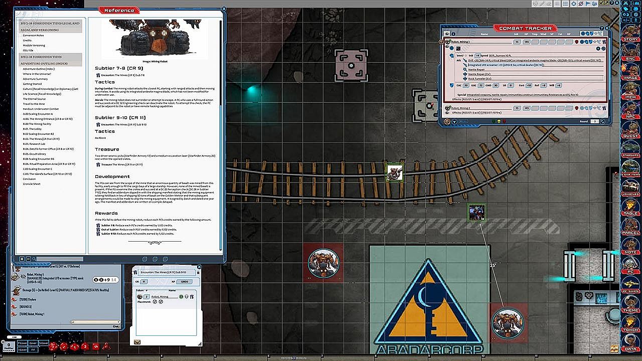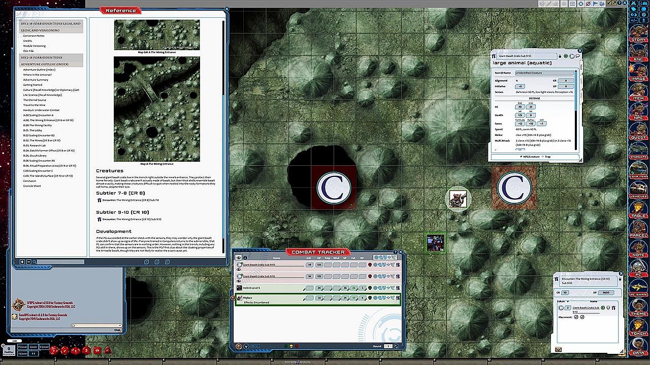 • Tokens for each encounter are all pre-placed in starting locations on the map. You can edit these on the fly.