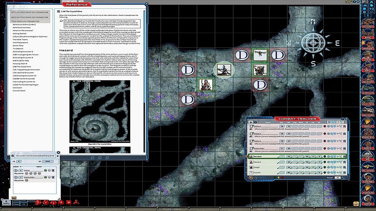 - Tokens for each encounter are all pre-placed in starting locations on the map. You can edit these on the fly.