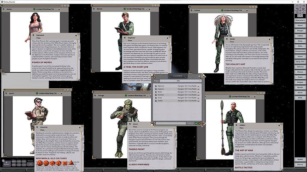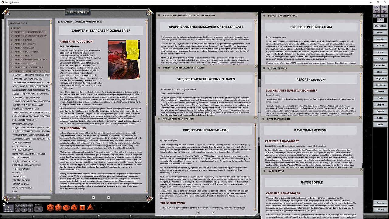 Customize characters through dozens of origins and feats, then drag and drop them into automated sheets that recalculate stats. Run combat, diplomatic missions, and vehicle operations from MALP probes to F-302 fighters, with gear from Tau'ri, Jaffa, and Goa'uld sources. Share book images and handouts in-game while a flexible system lets classes explore secondary skills. Ideal for GMs and players seeking automated, drag-and-drop tabletop RPG tools on PC.