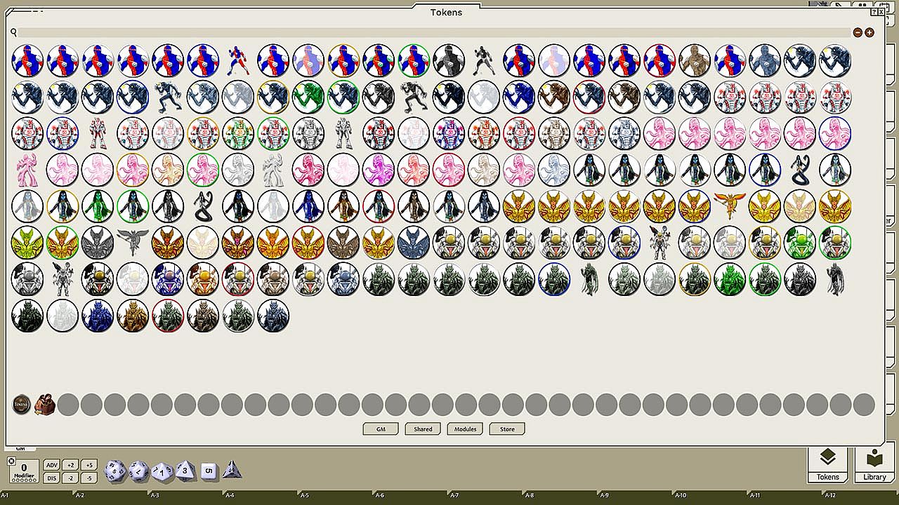Got a little something your players need to avenge? Perhaps you need to form a league of justice to battle the forces of darkness in your city? Well, wait no more with Monster Grin's 176 unique tokens of supers, superheroes, super-heroines, and super-villans, each usable as PCs, NPCs, mooks, antagonists, or protagonists! Stunning, more-than-four-color pieces can become horrific heroes from the deep ocean trenches, robot-like healers, mighty mythological mythic beings, and much more!