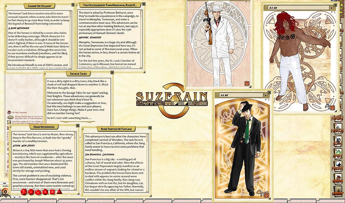 This Savage realm of Suzerain is the tale of the 1930s Great Depression as you've never experienced it. For Heroic rank characters who are feeling particularly heroic, Noir Knights is part of our American Grit realm, where government agents investigate paranormal activity across a hard boiled film noir America.