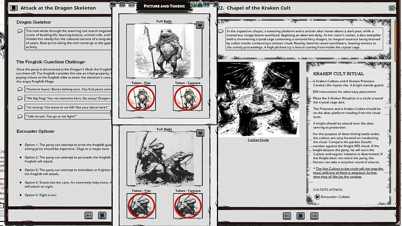 Encouraged by the prospect of rewards, fame, and aiding their village, the heroes set forth from the home towards the swamp. Along the way, they stumble upon a distressed family besieged by corrupted creatures at their dilapidated farm, prompting the adventurers to delve deeper into the marsh. Their journey leads them to a mysterious temple, where a Kraken Cult is harnessing the magic of a fairy dragon to nurture an infant Kraken, thereby corrupting the surrounding land.