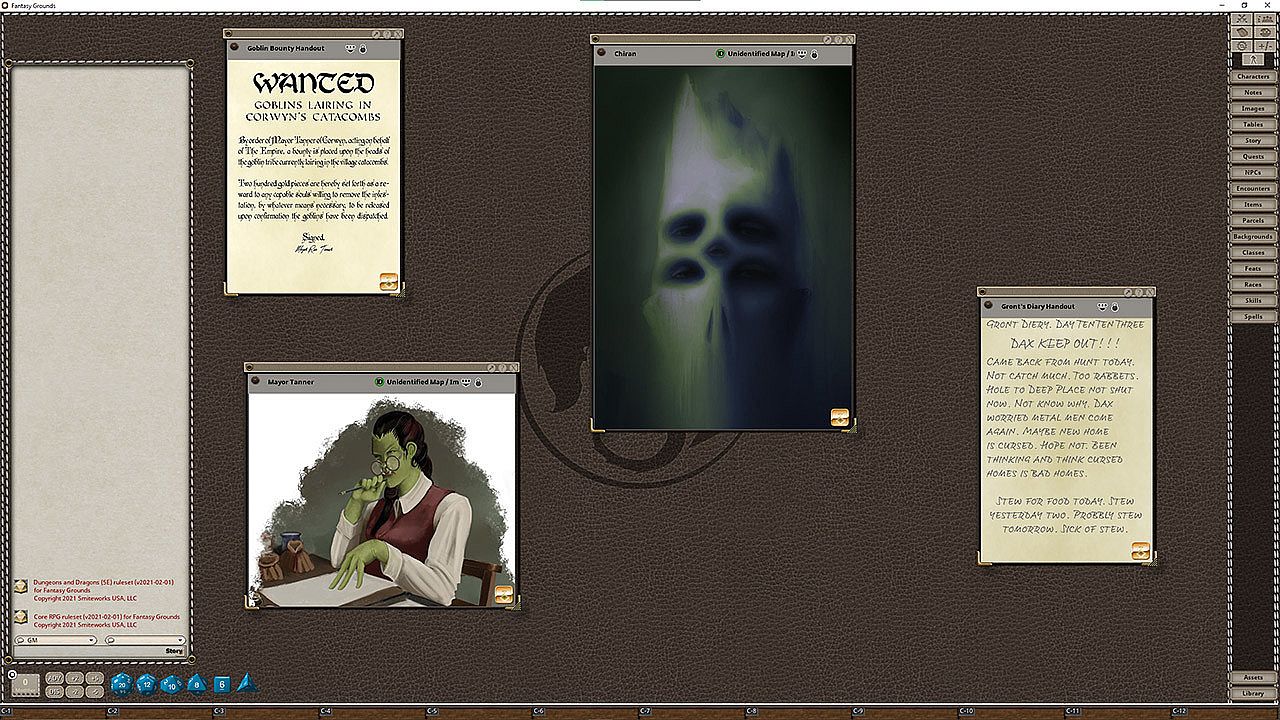 Requires: An active subscription or a one time purchase of a Fantasy Grounds Full or Ultimate license and any ruleset. Compatible with Fantasy Grounds Unity or Fantasy Grounds Classic