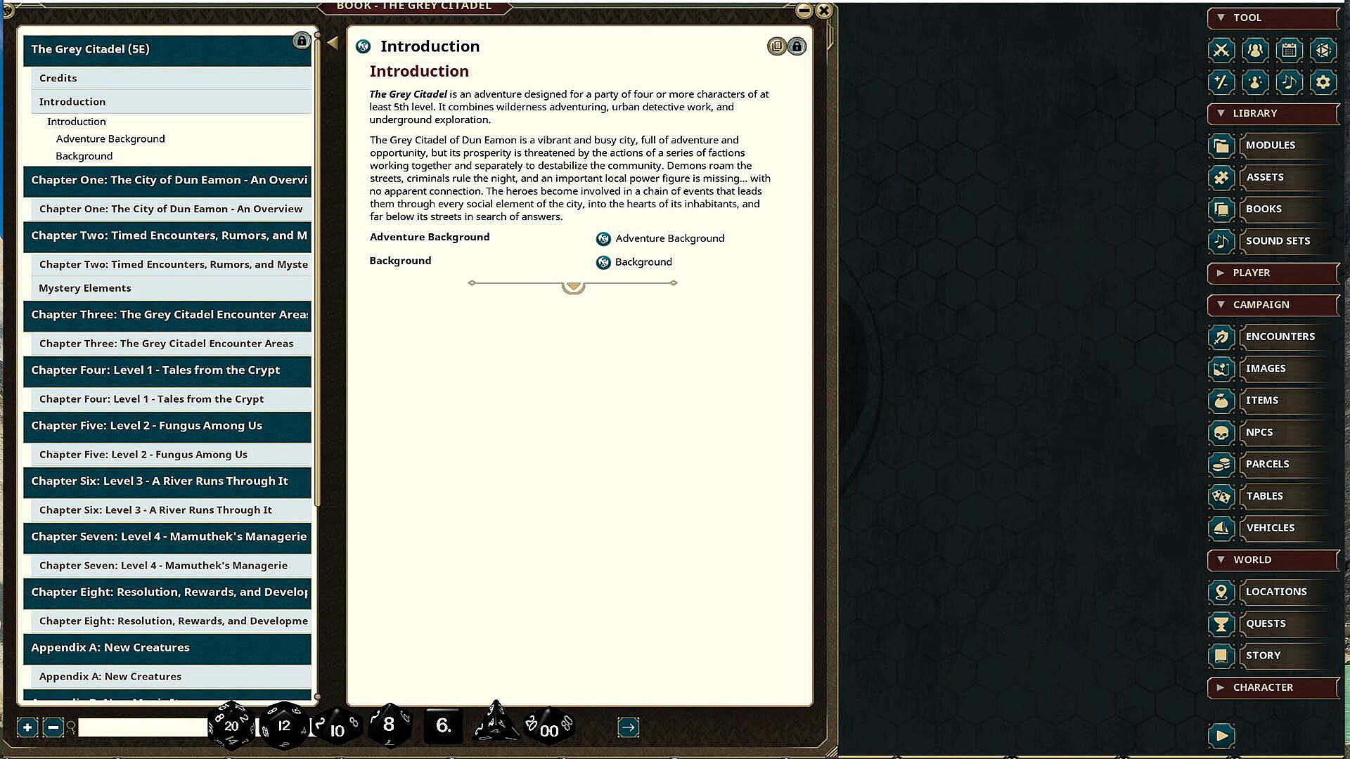 Uncover An Artifact of Great Evil The Grey Citadel is a mini-campaign of urban detective work and dungeon exploration designed for four or more characters of 5th level. Set in a rain-soaked, rough-and-tumble frontier city. The Grey Citadel offers numerous colorful NPCs, a richly unique location, new monsters, and magic items -- plus enough plot twists to provide hours of role-playing and door-kicking adventure, where your wits must be as sharp as your swords.
