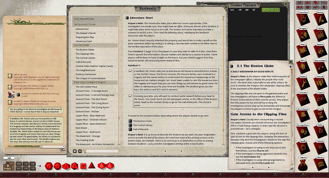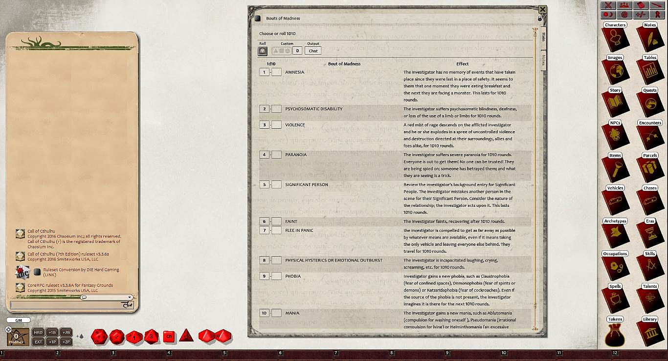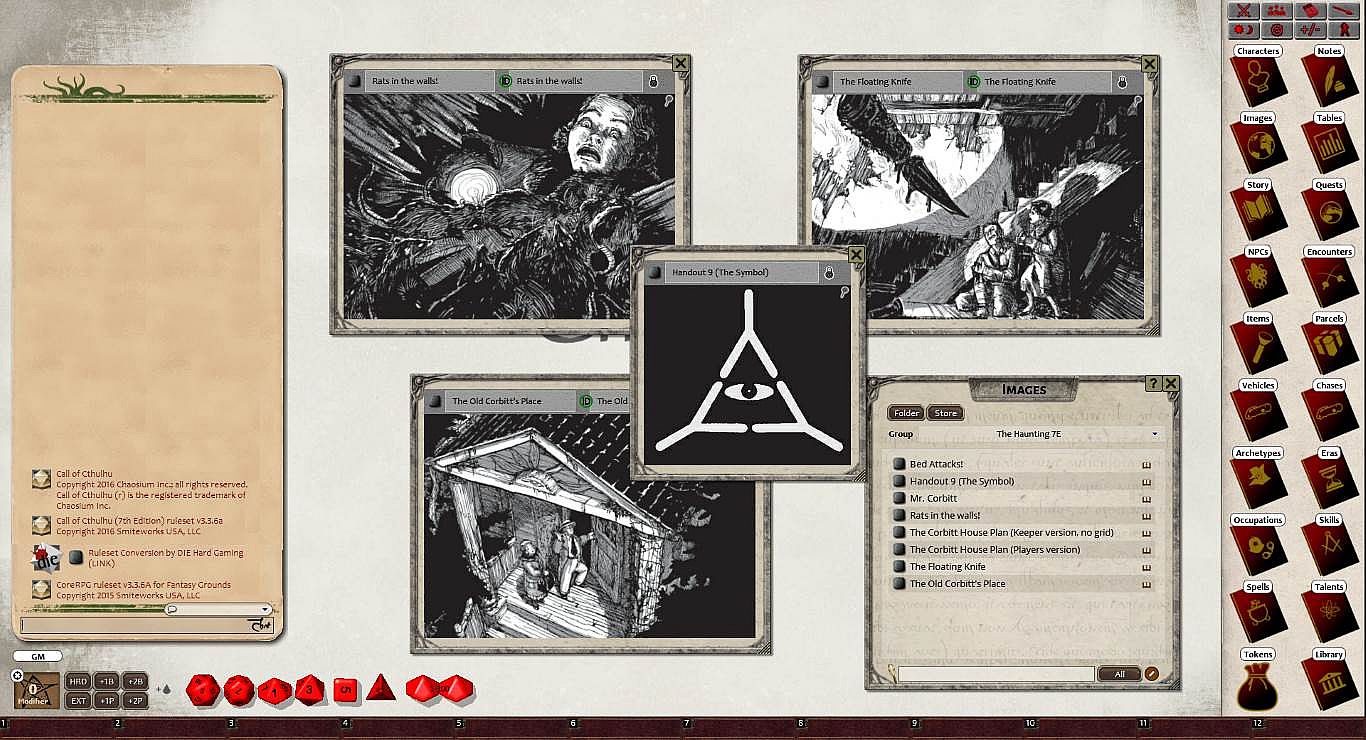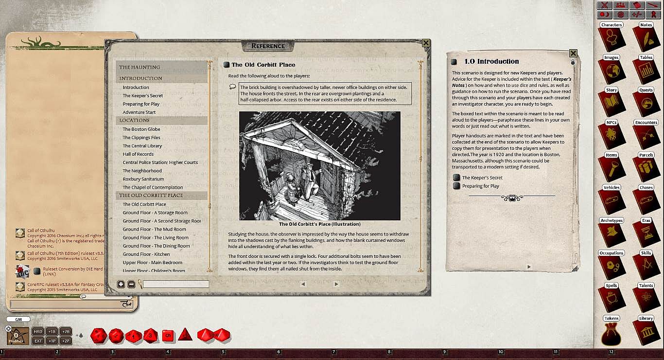 Requires: An active subscription or a one time purchase of a Fantasy Grounds Full or Ultimate license and a one time purchase of the Call of Cthulhu 7E ruleset.