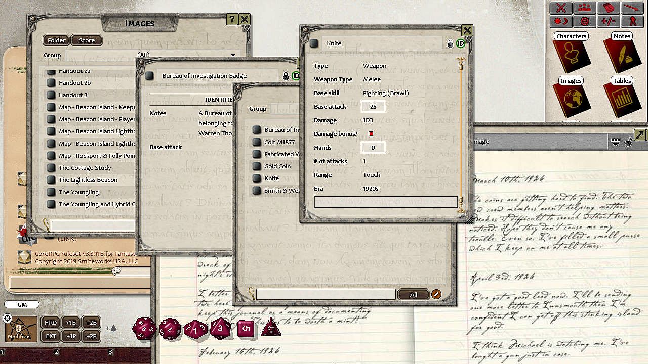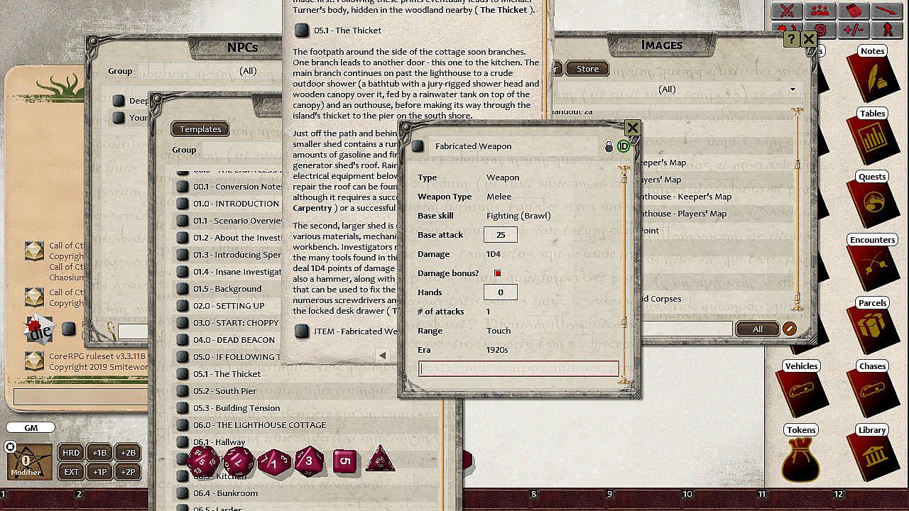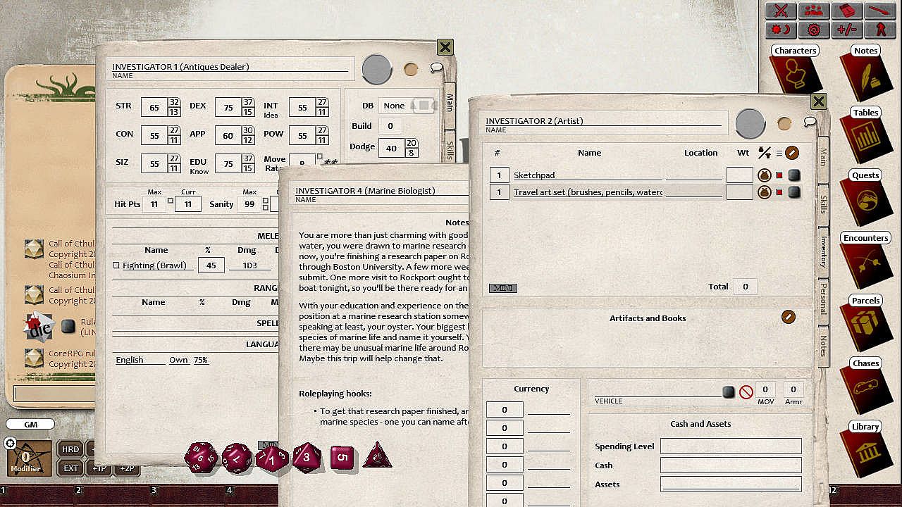 Requires: An active subscription or a one time purchase of a Fantasy Grounds Full or Ultimate license and a one time purchase of the Call of Cthulhu 7E ruleset. Compatible with Fantasy Grounds Unity or Fantasy Grounds Classic