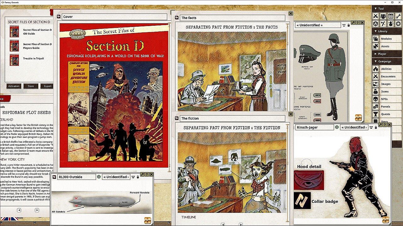 The Secret Files of Section D is a Savage Worlds powered, pulp action Roleplaying Game, exploring the highly classified files of the British Secret Intelligence Service.Formed in 1938, SIS Section D is a clandestine operations division officially tasked with gathering intelligence on Fascist and Bolshevik powers in Europe. Unofficially, there are much greater threats to the Empire, and even the world.