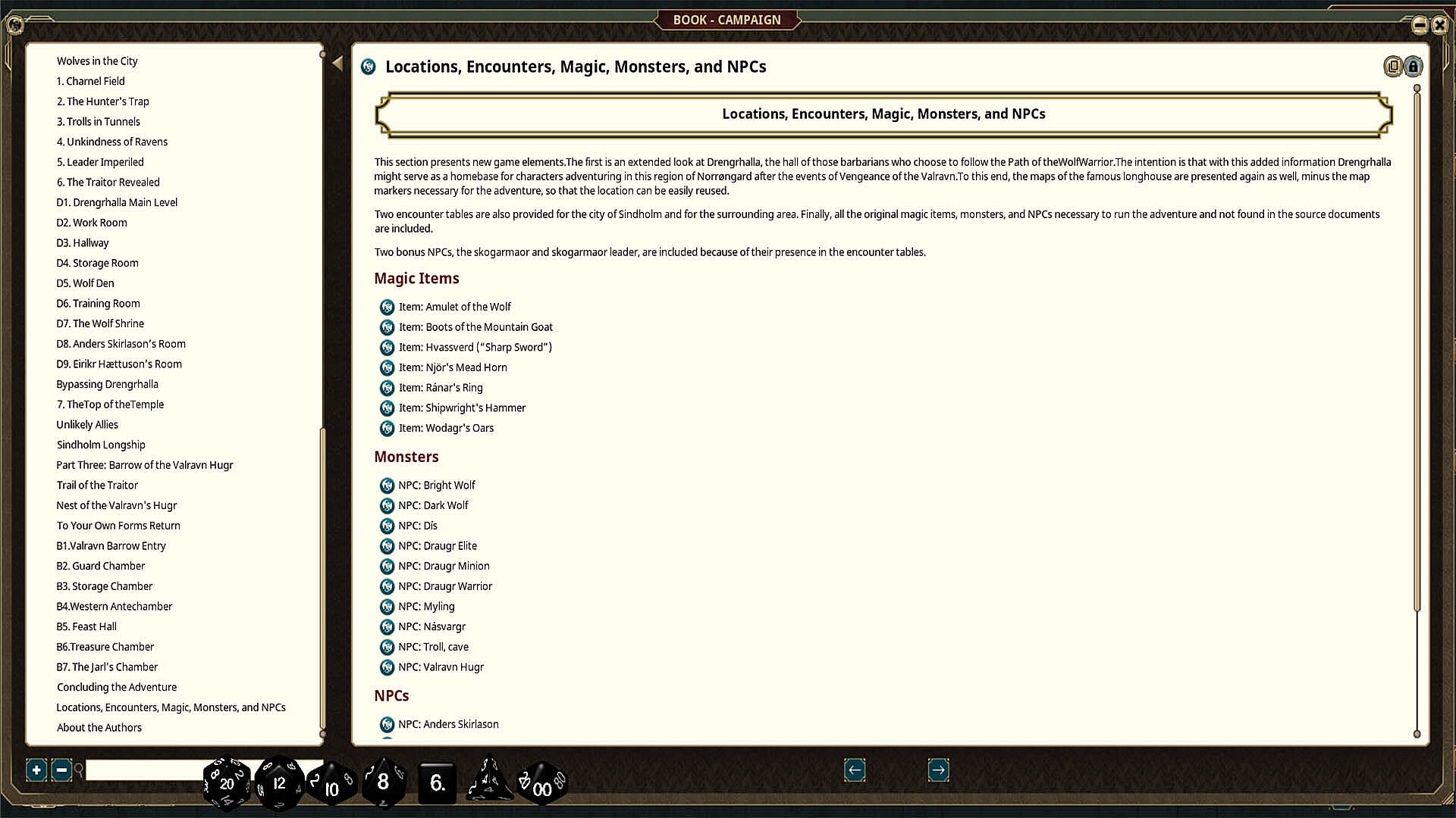 The Jarl of Sindholm has a problem. People are being slain in the outlying farms and villages north of his city. By the savage bite and claw marks on the victims, the jarl suspects that wolves are to blame. He seeks adventurers to find the creatures responsible and put a stop to their savage attacks. But the jarl is wrong in his assumptions.The danger to Sindholm is far greater than wolves and far older than he suspects.