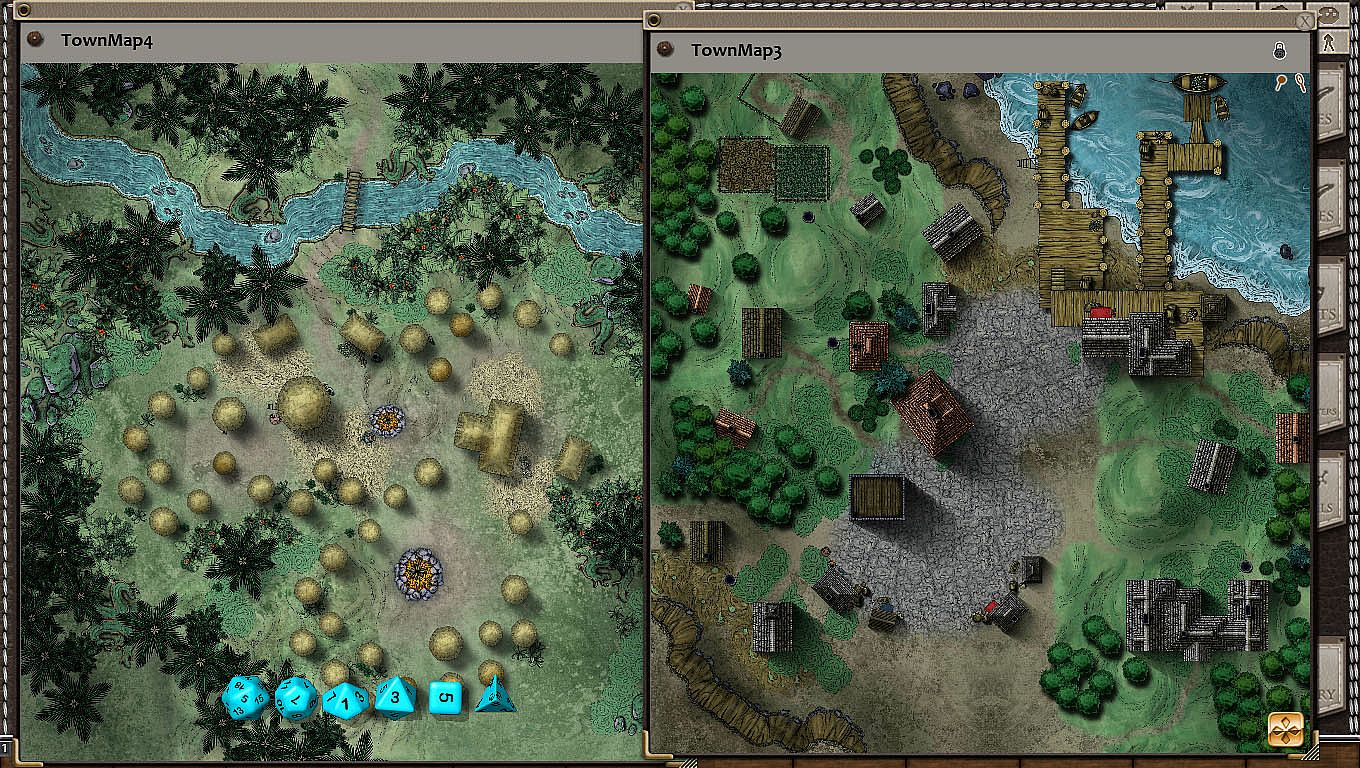 Designed for areas in size between regional and battle maps Town and Village Map Pack delivers a variety of locations for intermediate maps from classic fantasy woodland towns to jungle villages.