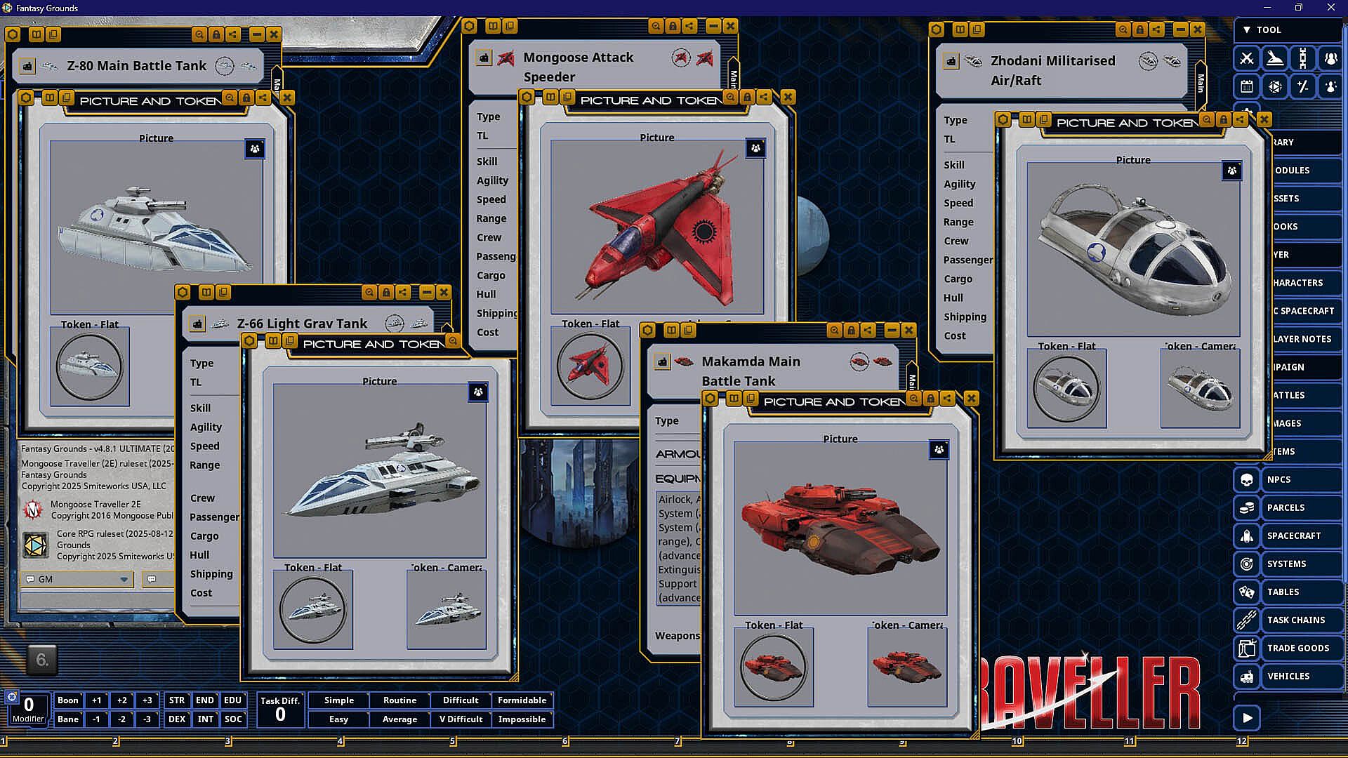 Requires:An active subscription or a one time purchase of a Fantasy Grounds license and the Traveller 2E (Mongoose) ruleset.