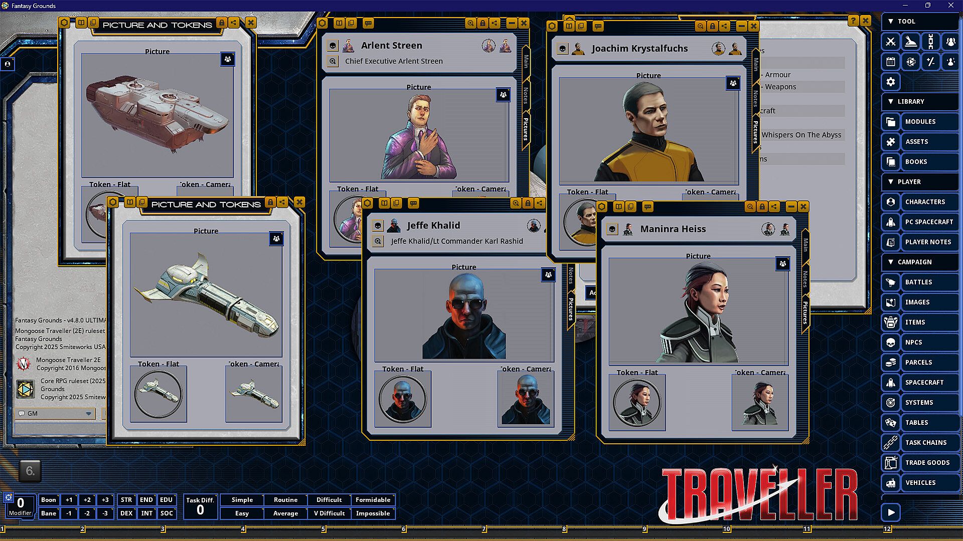 Requires: An active subscription or a one time purchase of a Fantasy Grounds license and the Traveller 2E (Mongoose) ruleset.