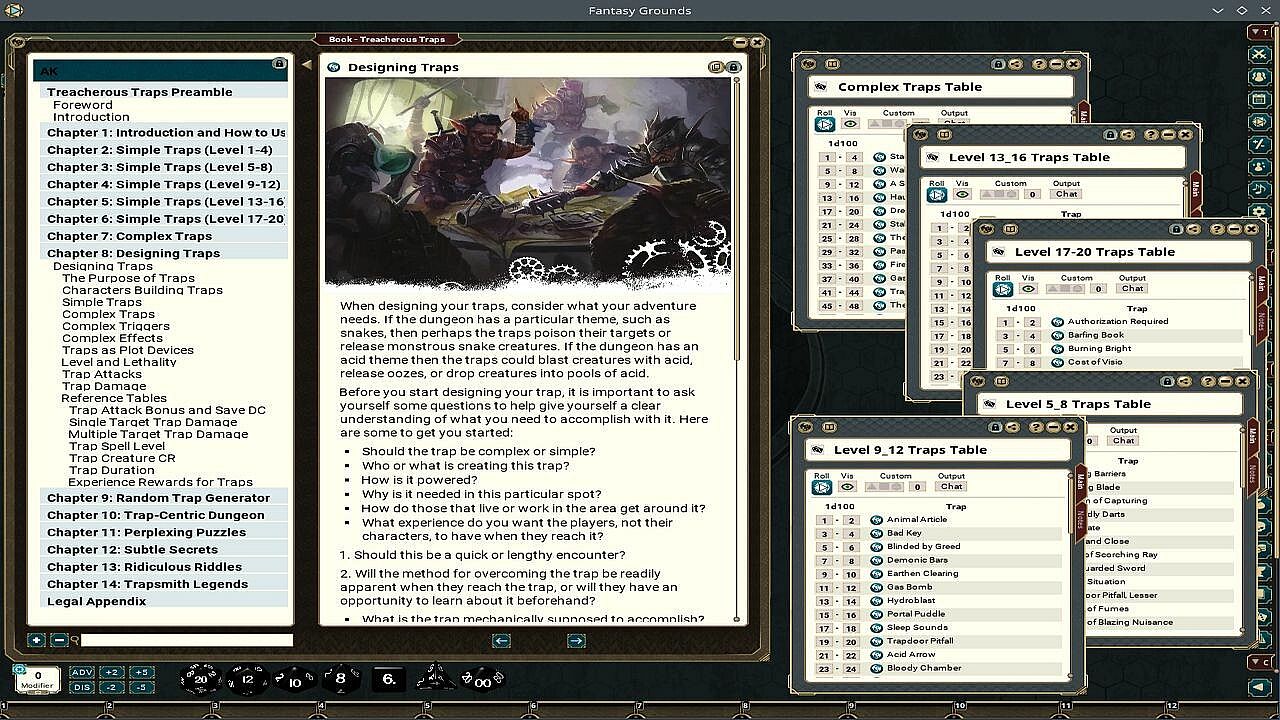 Treacherous Traps is an incredible resource for game masters looking to get more out of their dungeon design. Contained within are over 250 pre-built traps ranging in level and lethality, so that you can always find the perfect trap to challenge your players.Also included is a random trap generator, consisting of 50 trap triggers and 50 trap effects that, when combined, create up to 2,500 different combinations.