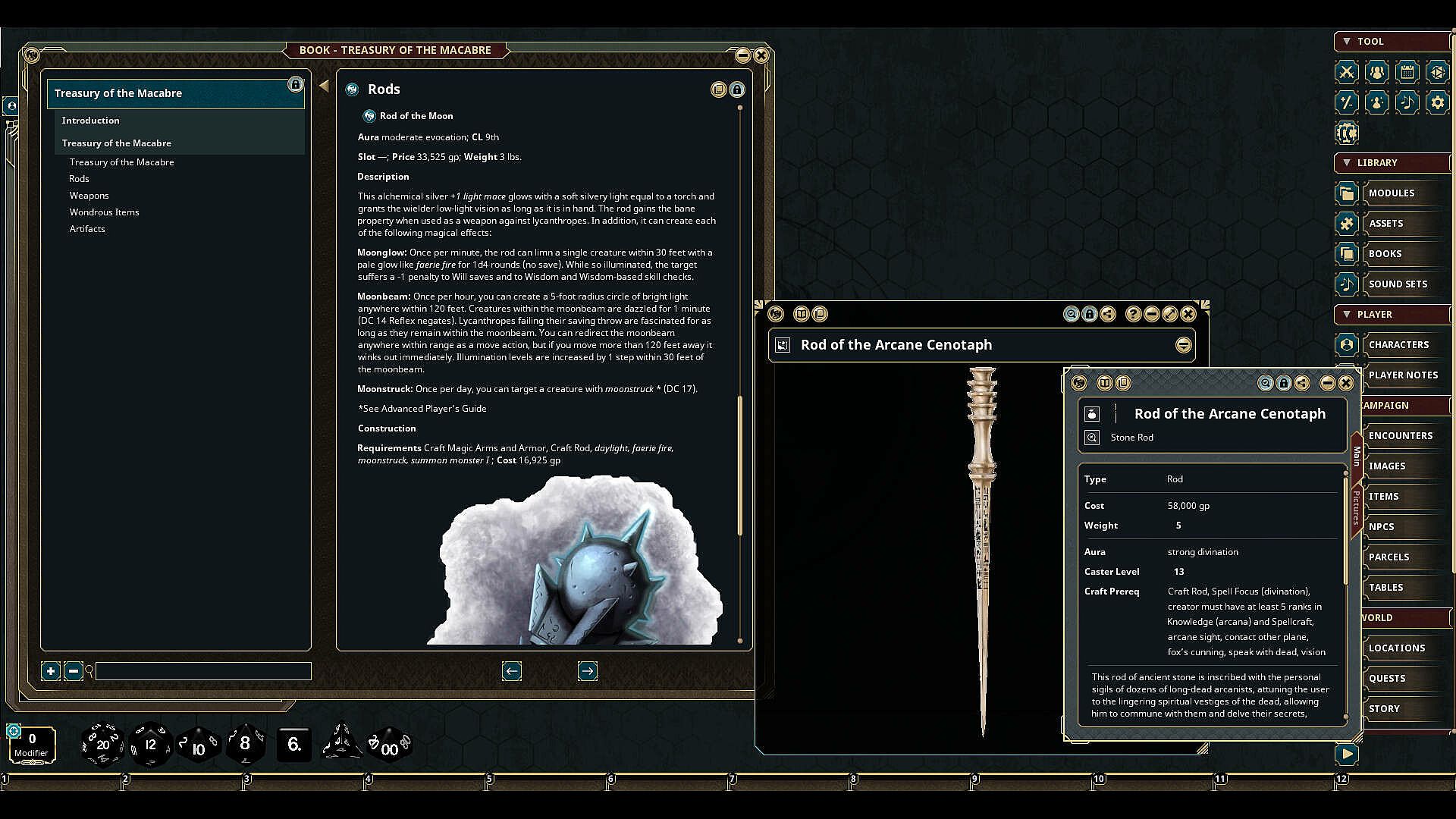Liches and the Ancient Dead: crown of deadspeech, gauntlet of staveguarding, rod of the arcane cenotaph, skeleton cage, spinelash