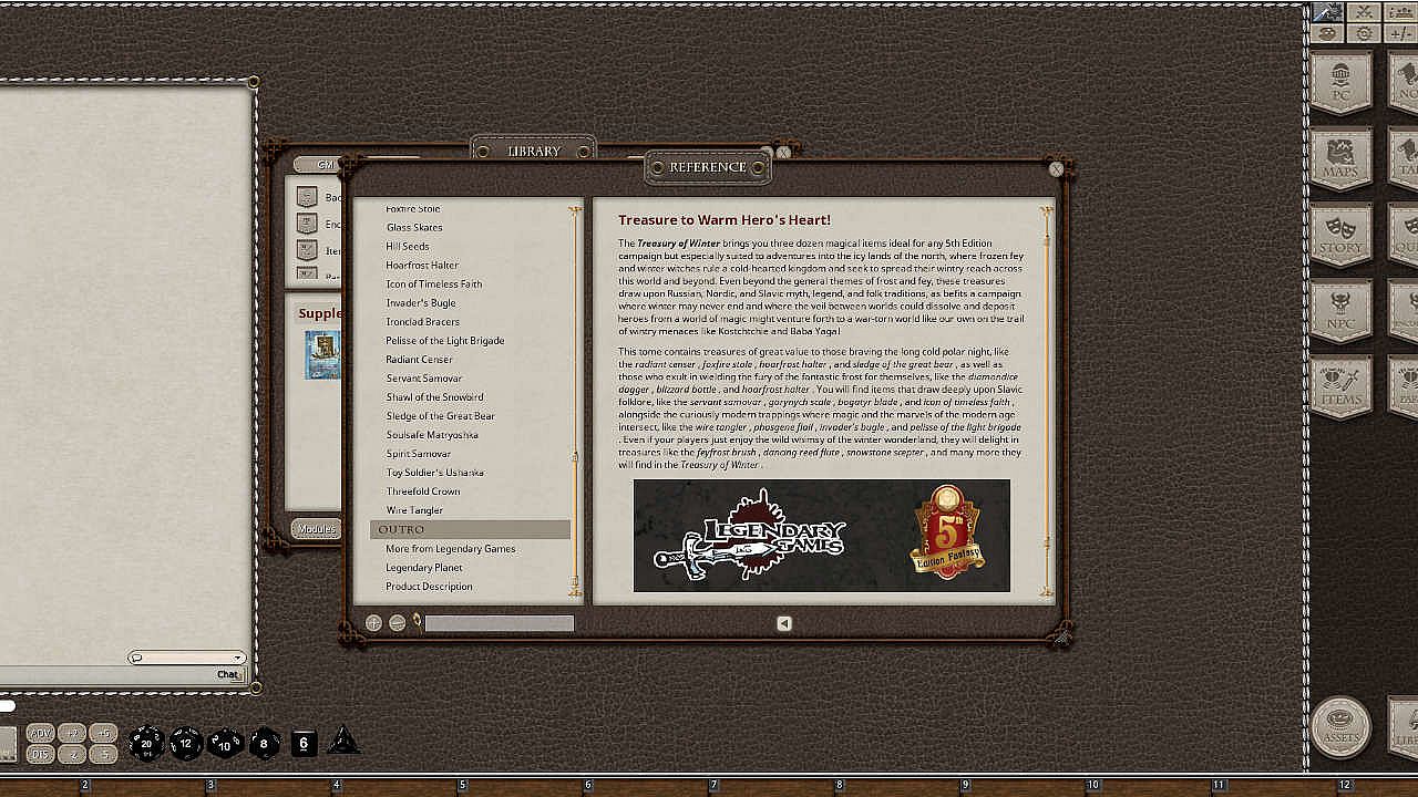Before you start looking for a cheap Fantasy Grounds - Treasury of Winter CD Key, take a moment to check the essentials. Developed by SmiteWorks USA, LLC. PC released date: 02 Mar 2021. Genres: Strategy, Indie, RPG. Categories: Multi-player, Family Sharing, Co-op, Single-player, Downloadable Content, Cross-Platform Multiplayer, Shared/Split Screen Co-op, Shared/Split Screen, Online Co-op, LAN Co-op, Partial Controller Support.