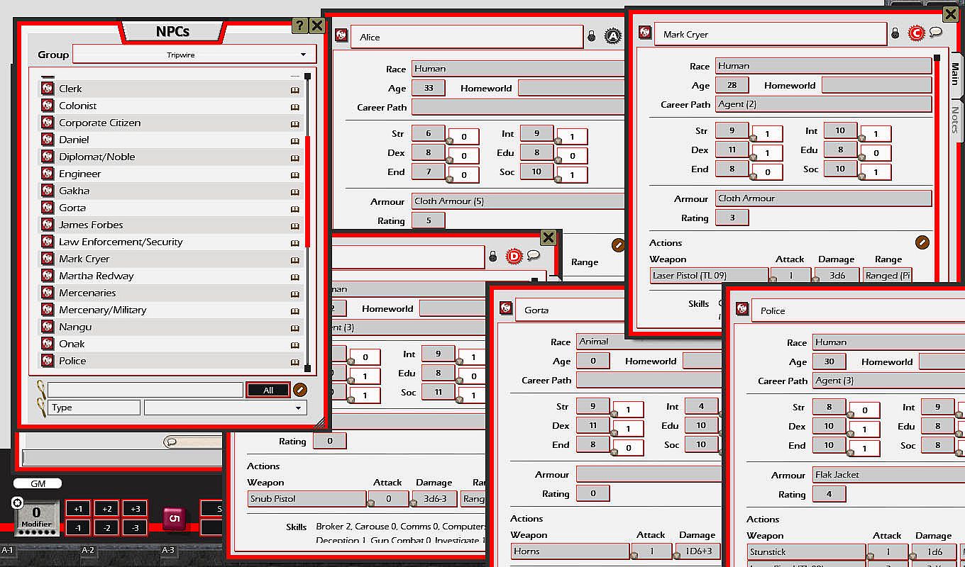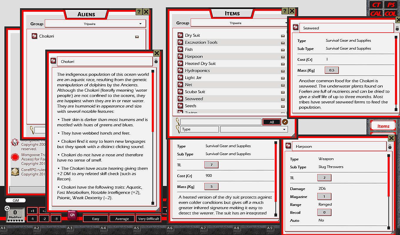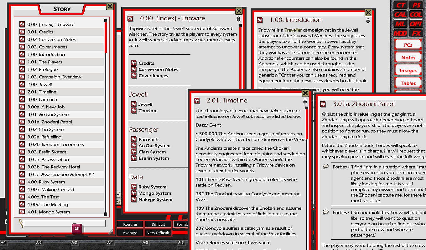 Tripwire is set in the Jewell subsector of Spinward Marches. The story takes the players to every system in Jewell where an adventure awaits them at every turn. This book is more than just a campaign; it serves as a useful guide to the Jewell subsector, detailing each world with a brief history, local laws and places of interest. Tripwire also includes a timeline of Jewell subsector, random encounters, new equipment and spacecraft.