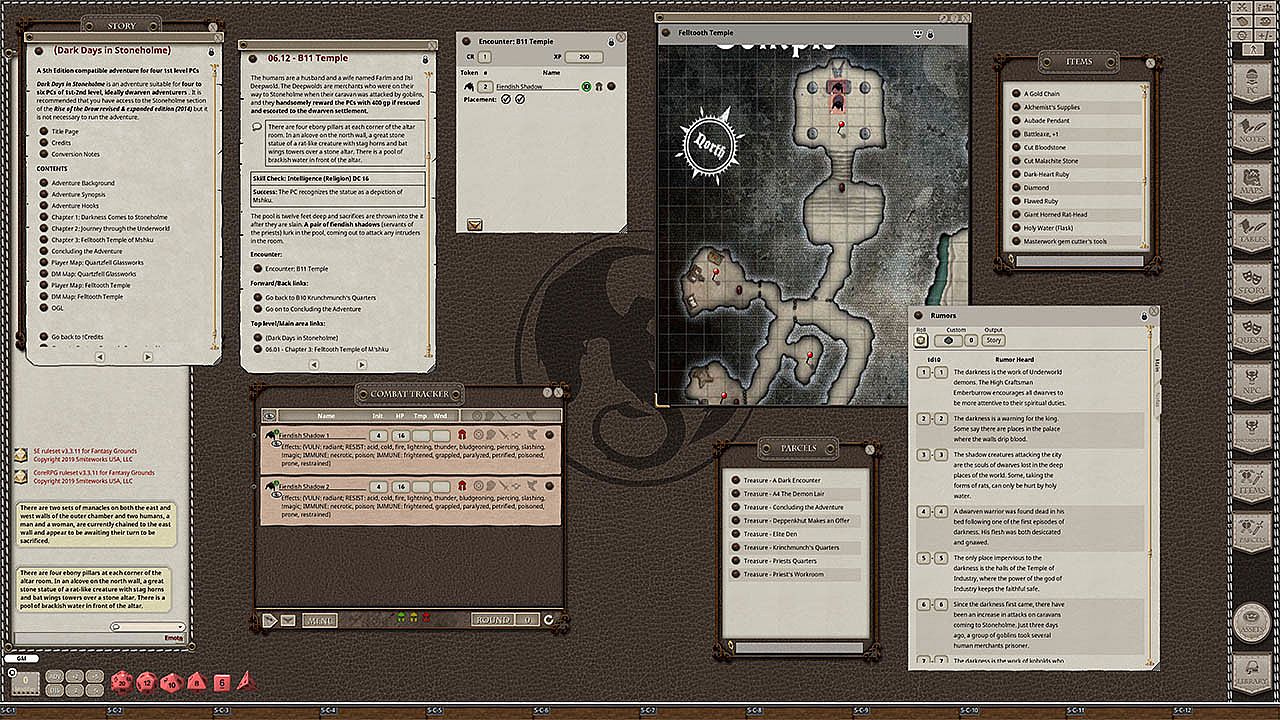 Requires: An active subscription or a one time purchase of a Fantasy Grounds Full or Ultimate license and the included 5E Compatible ruleset.