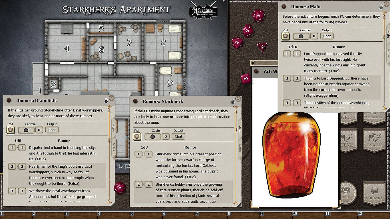 • Requires: An active subscription or a one time purchase of a Fantasy Grounds Full or Ultimate license and the included 5E Ruleset.