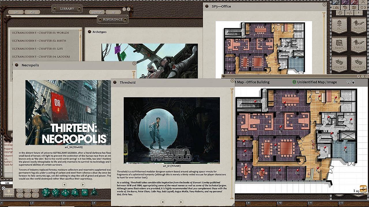 - A customizable sci-fi dungeon map system with 30 different rooms.