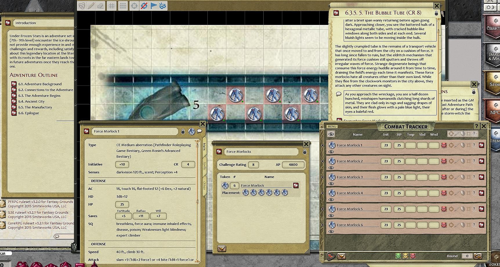 Requires: An active subscription or a one time purchase of a Fantasy Grounds Full or Ultimate license and the included Pathfinder ruleset (3.5E Compatible).