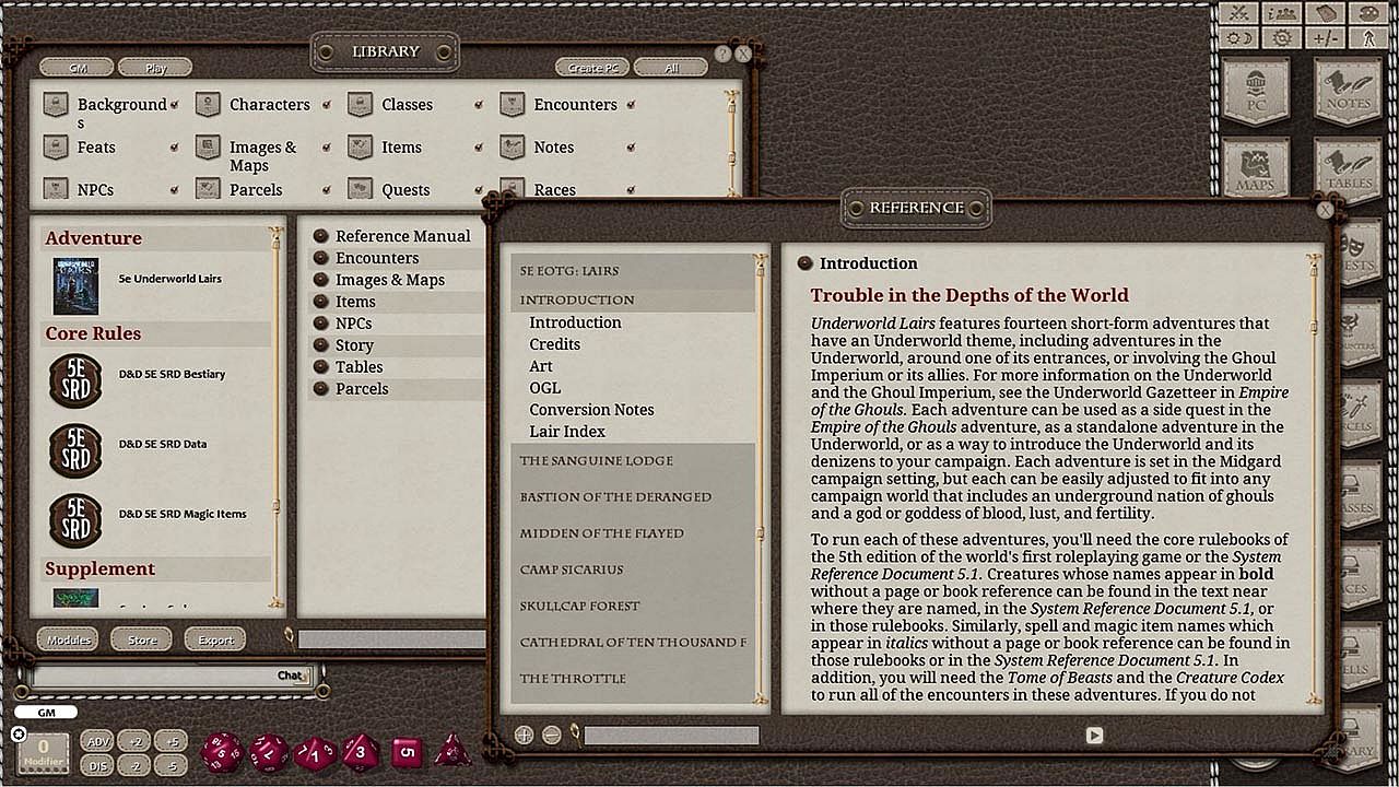 Requires: An active subscription or a one time purchase of a Fantasy Grounds Full or Ultimate license and the included 5E Compatible ruleset.