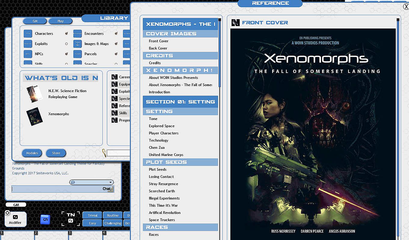 Requires: An active subscription or a one time purchase of a Fantasy Grounds Full or Ultimate license and the W.O.I.N. ruleset (currently available as part of N.E.W, and available for O.L.D. and N.O.W in the future)
