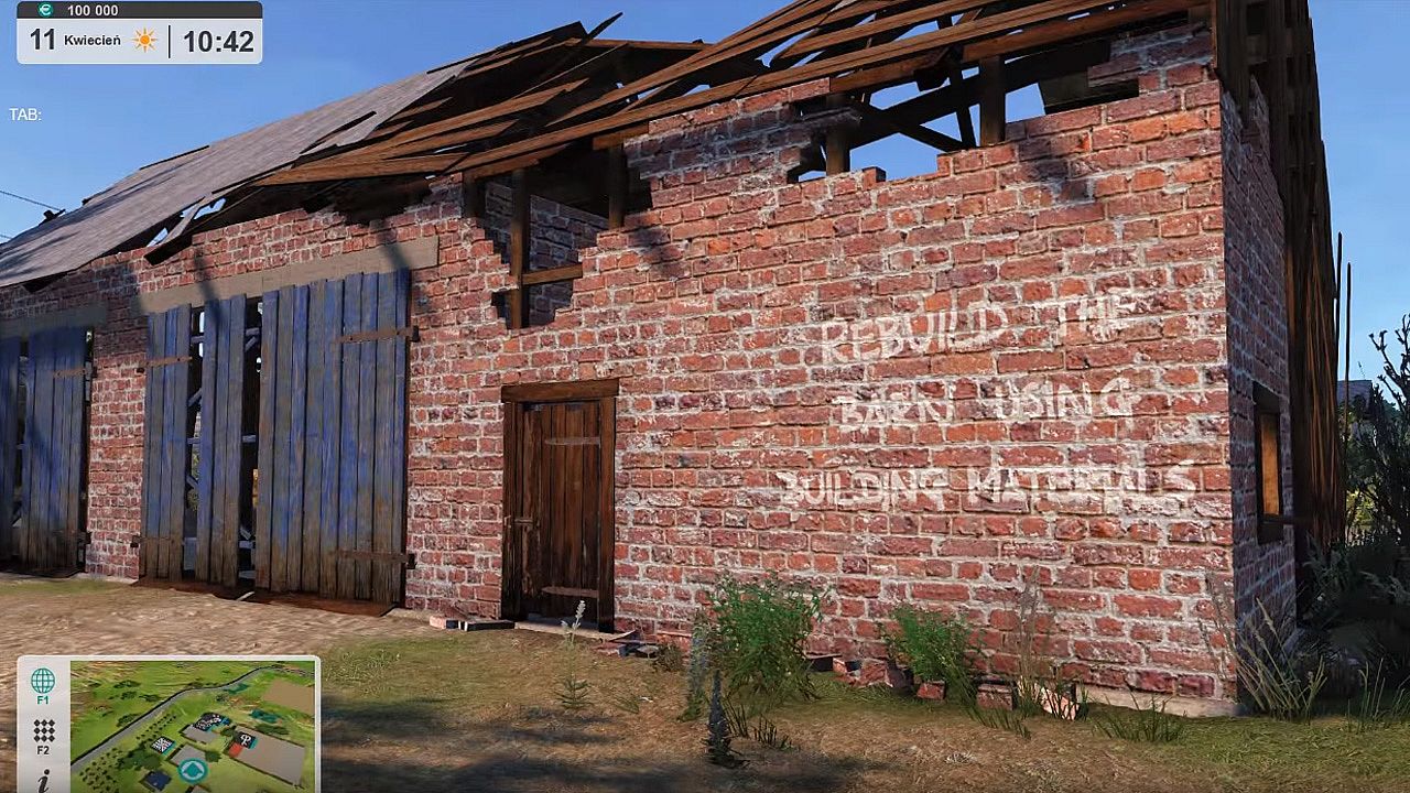 - Building repair and rebuilding functionality, using predefined materials (barn as a prototype to repair/rebuild)