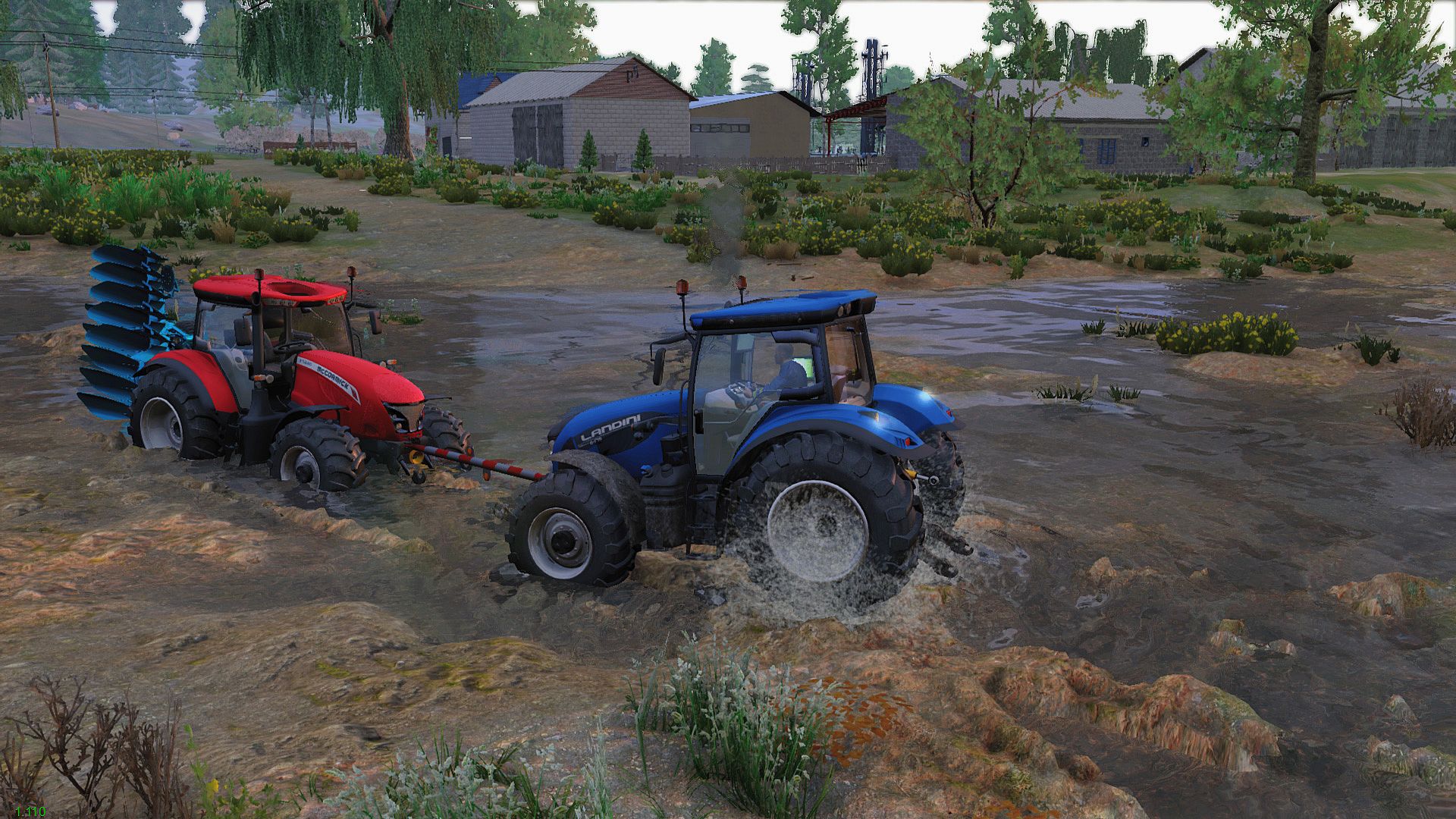 Tackle challenging farm simulation with muddy terrains, slimy fields, and rains that transform the landscape for off-road tractor action. Ponds expand in real time during downpours, while you hook up a towbar to pull loads and use ladders to scale barn structures. Repair and rebuild buildings with set materials, starting from barn prototypes, and wield the motorsense tool to clear grass and bushes.