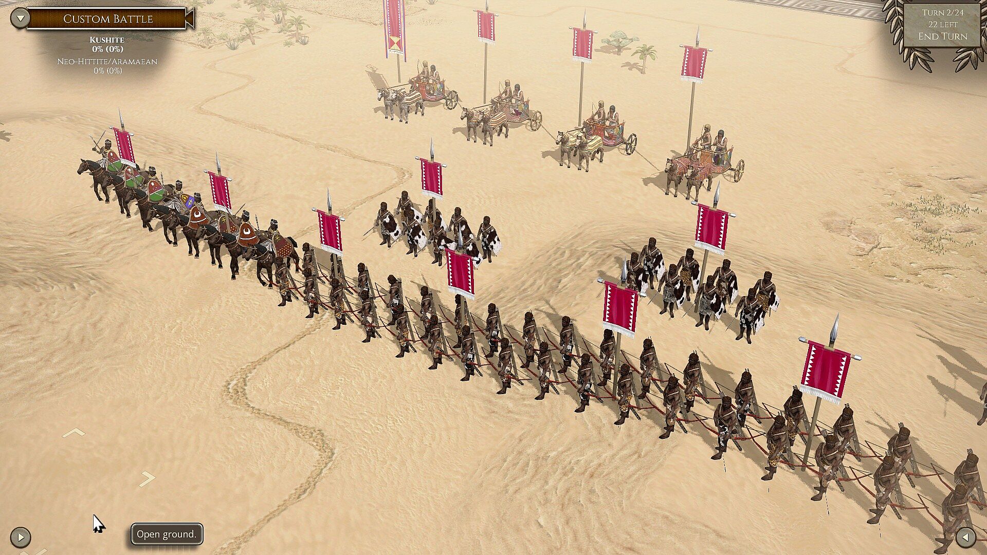 - 8 new Epic Battles: Kerkha River 2272 BC (Akkadians vs Elamites), Megiddo 1457 BC (Egyptians vs Syro-Cannanites), Zippasla 1410 BC (Hittites vs Mycenaean Greeks), Kadesh 1274 BC (Egyptians vs Hittites), Fields of Perire 1208 BC (Egyptians vs Libyans and Sea Peoples), Ilion 1184 BC (Mycenaean Greeks vs Trojans), Qarqar 853 BC (Assyrians vs Aramaeans, Hebrews and others), Per-Peg 730 BC (Kushite Egyptians vs Libyan Egyptians).