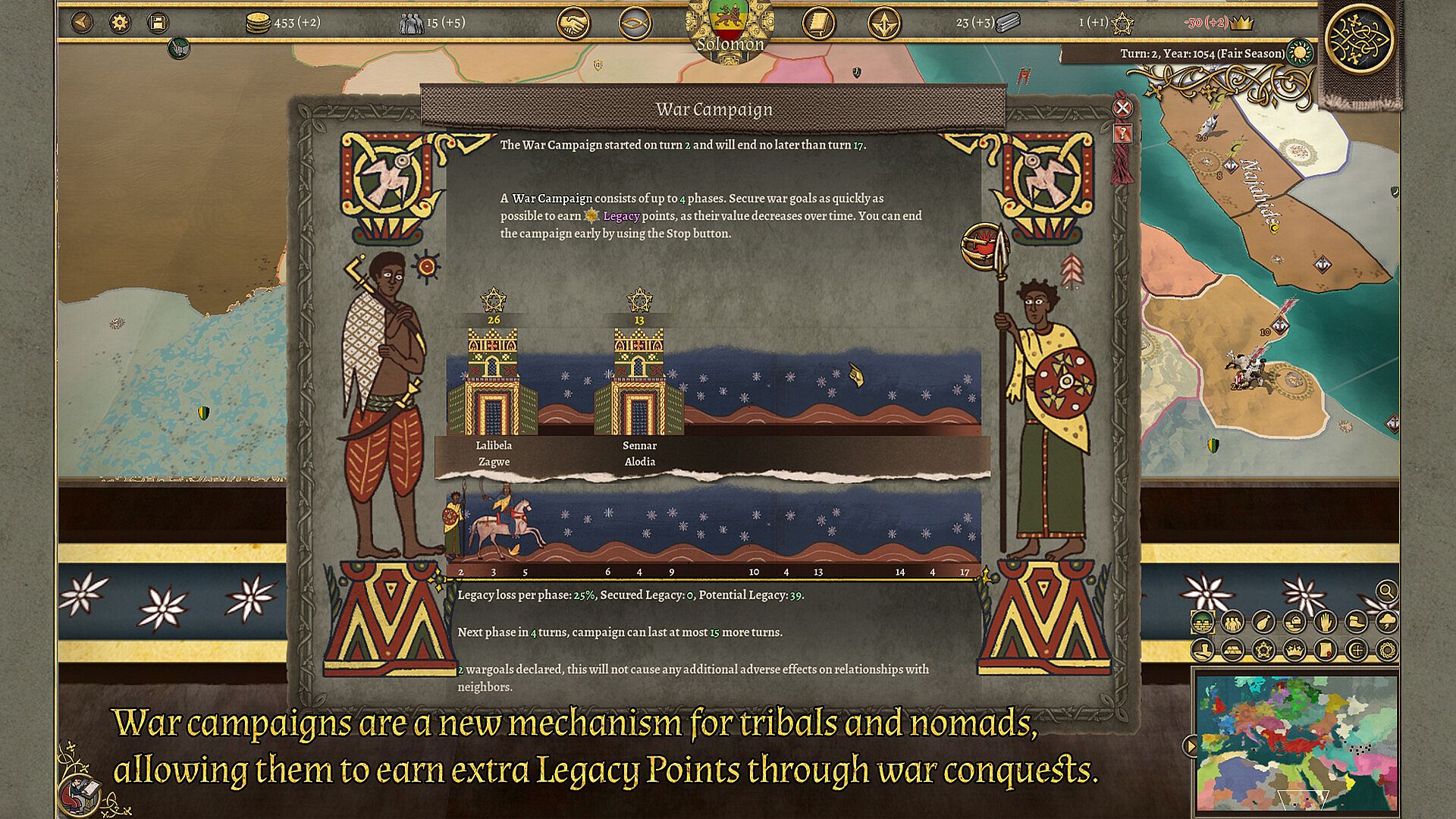 The DLC’s focal point on nomadic and tribal nations brings two groundbreaking mechanics for accumulating legacy points. Whether through the Great Trades or War campaigns' new features, each nation earns prestige and influence in different ways, creating a unique gaming approach. Custom buildings, war goals, and other exclusive features give these nations a fresh, challenging feel compared to more established realms.
