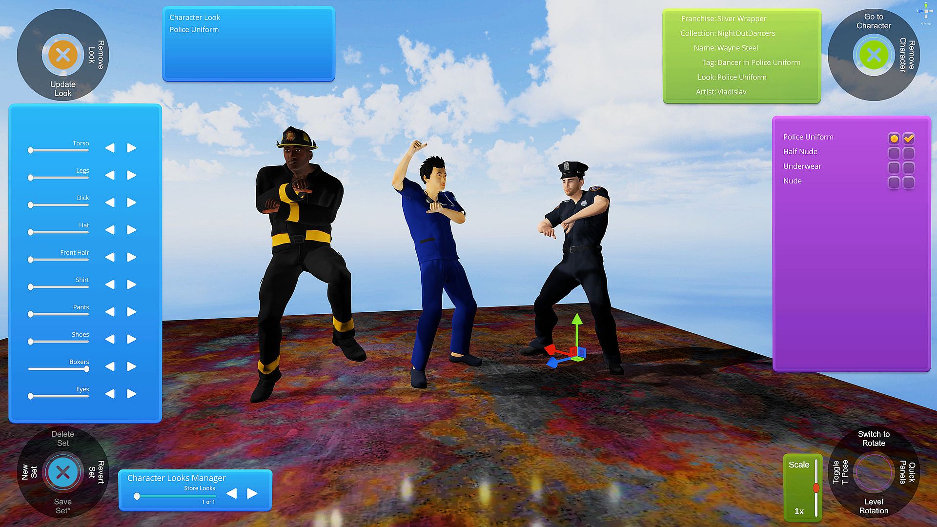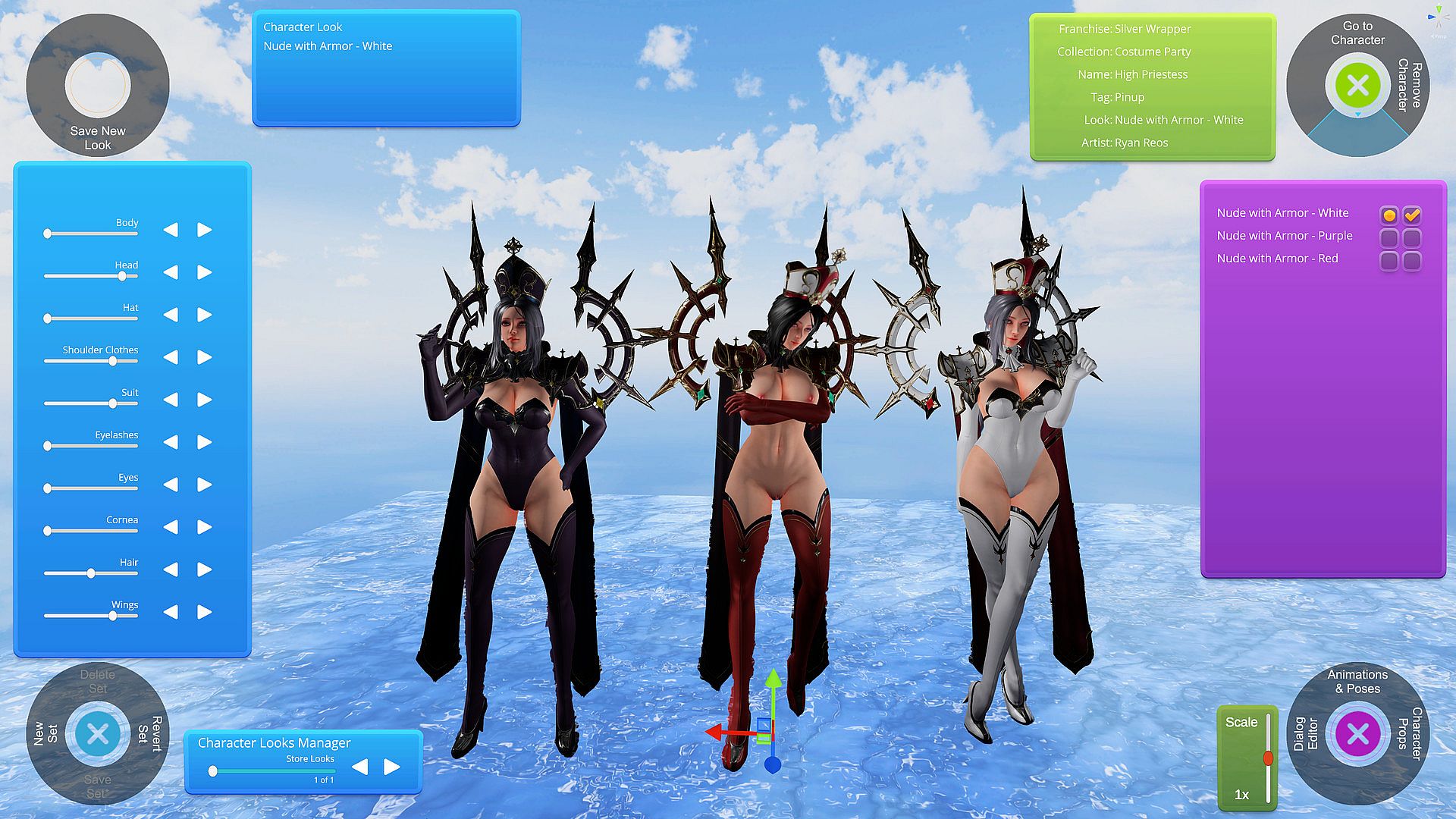 • Artist Variants - When artists provide separate base meshes for characters to provide different looks or component options. (When adding characters to a scene, characters that include artist variants will have additional Next/Previous Variants buttons to rotate through the different options.) Over 10 characters in Silver Wrapper have artist variants.
