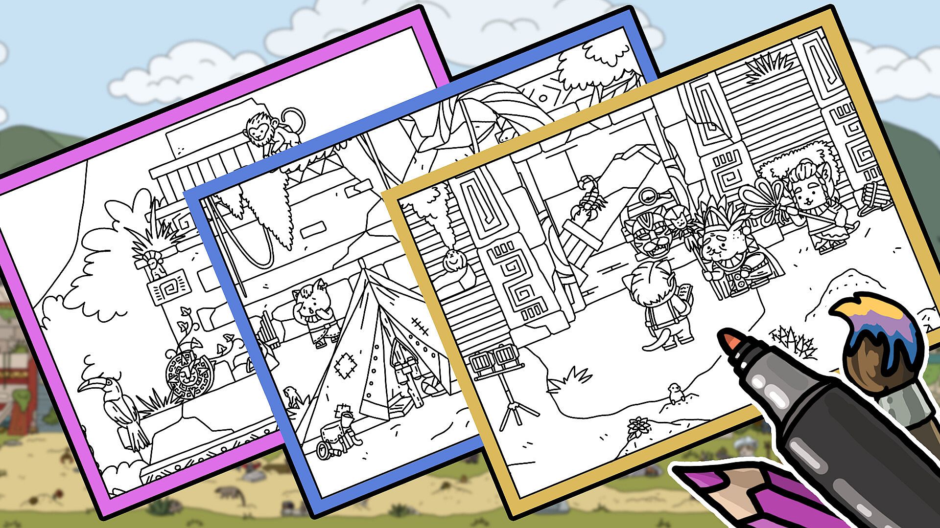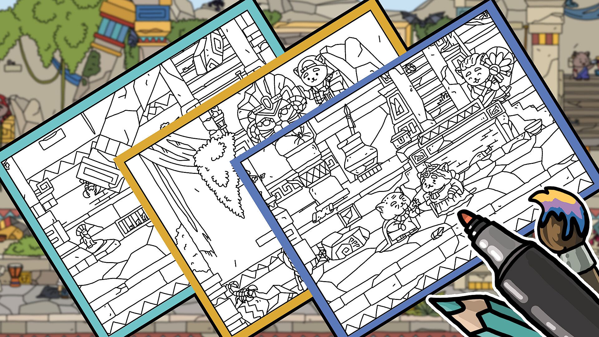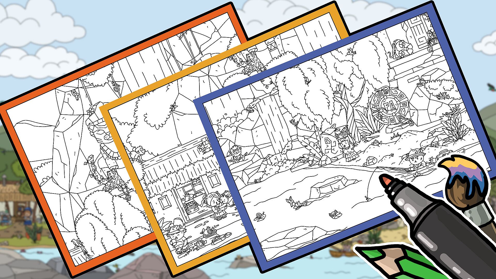 Print out coloring pages featuring standout shots from the game in A4 format. This collection includes logos and complete level files ready for any print size, even photo wallpaper. Access the files directly in the game folder or through the menu icon in the bottom right corner. Grab user-friendly printables to unwind with coloring. The setup keeps things simple for quick relaxation sessions on PC. Fans of laid-back creative breaks will enjoy turning these game captures into personal art.
