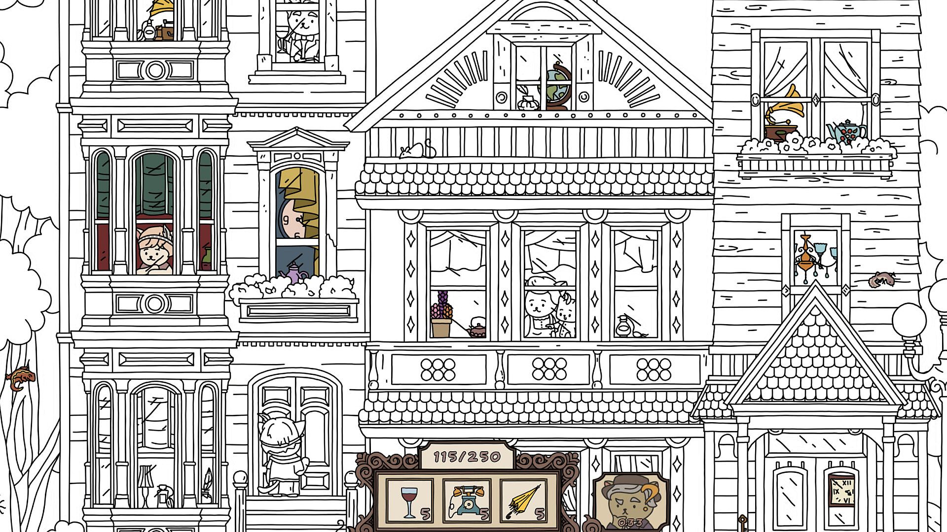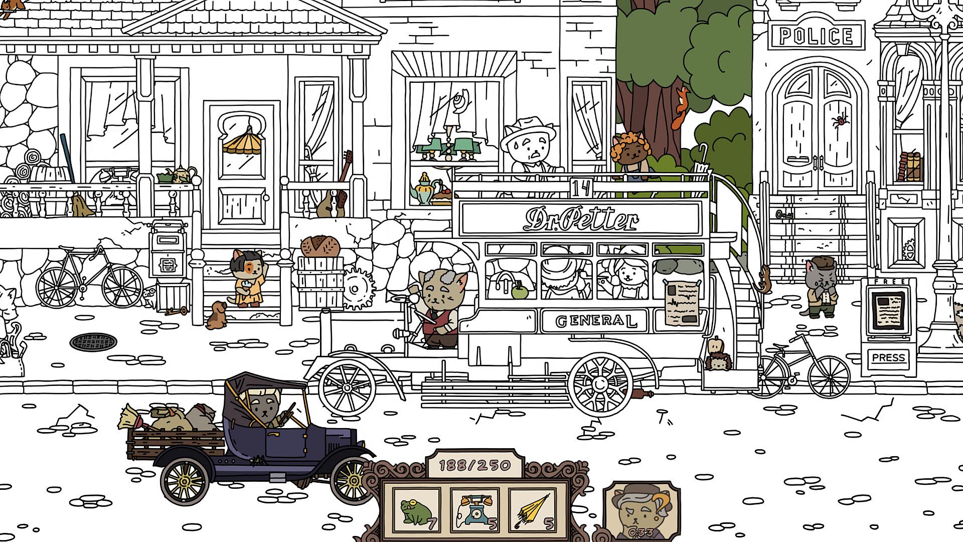 The city lives its life, every citizens is busy going about his or her business, cars rush about, and a majestic airship cruises through the air.You will have to find all the hidden objects in this area to make this black and white world painted in bright colors and come to life. It's up to you to decide which items you want to find! Enjoy the game with atmospheric music. Suitable for the whole family.
