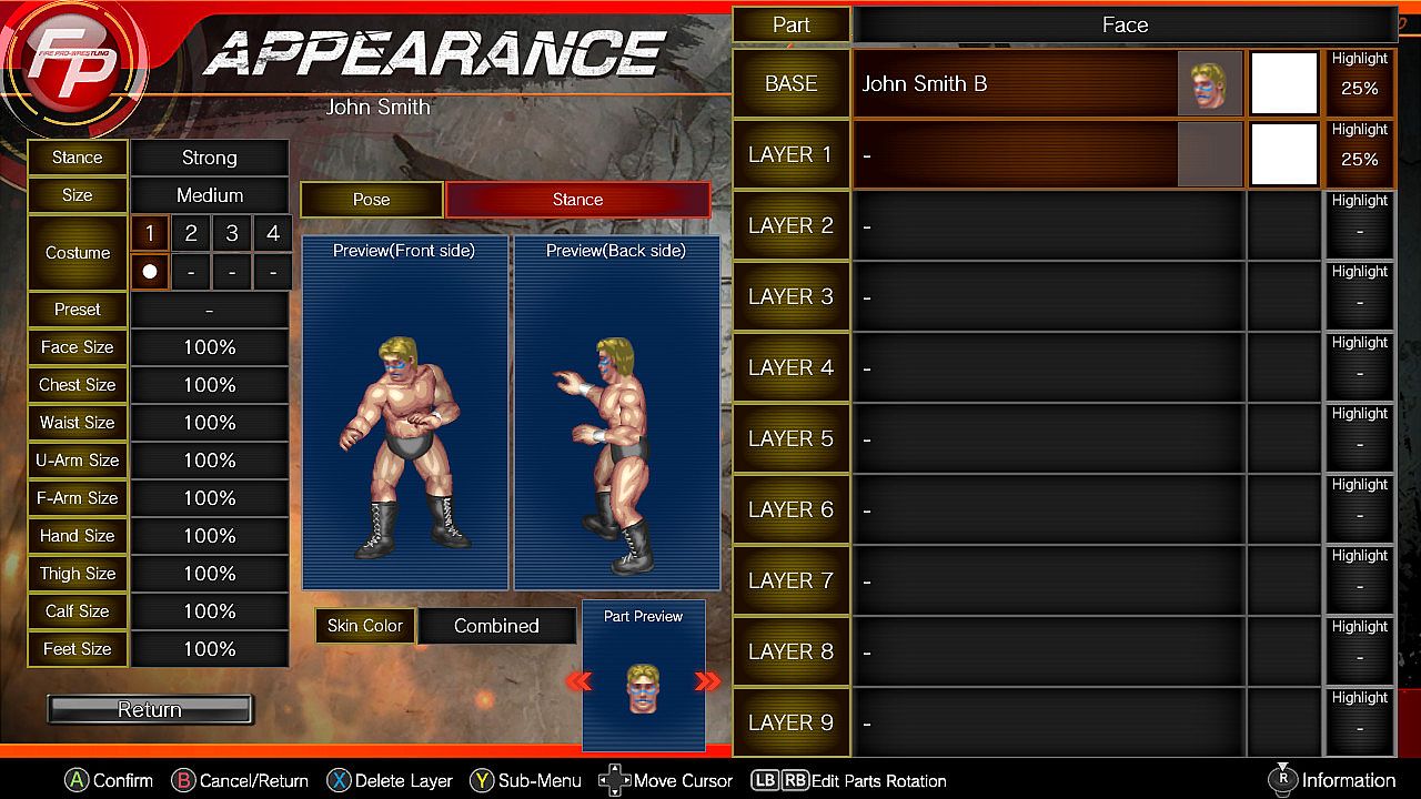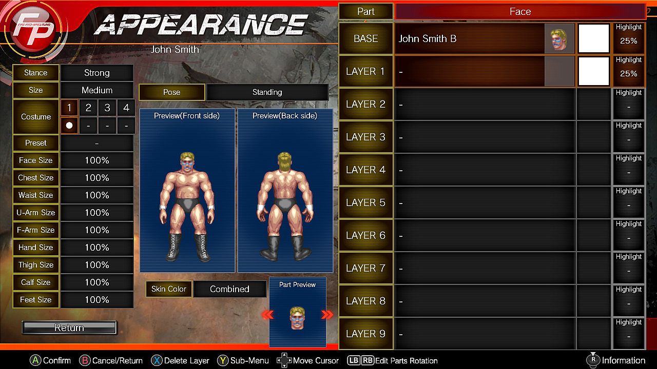 *Edit wrestlers containing custom parts can’t be used in online matches.