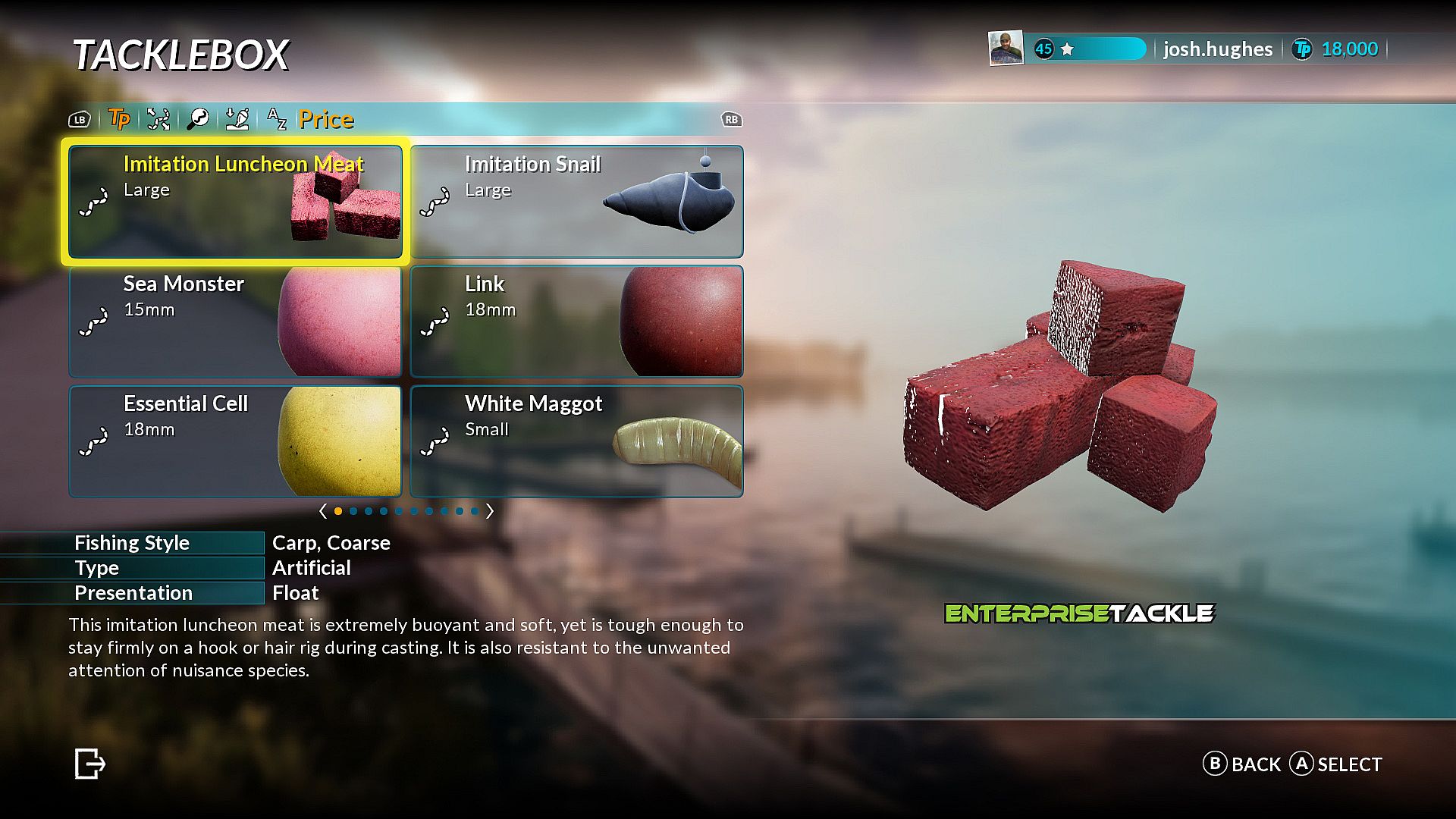 - Three new floats and five new baits to use on our European venues including the Link & Essential Cell boilies from Mainline Baits, Sea Monster from Baitworks and imitation snails and luncheon meat from Enterprise Tackle.