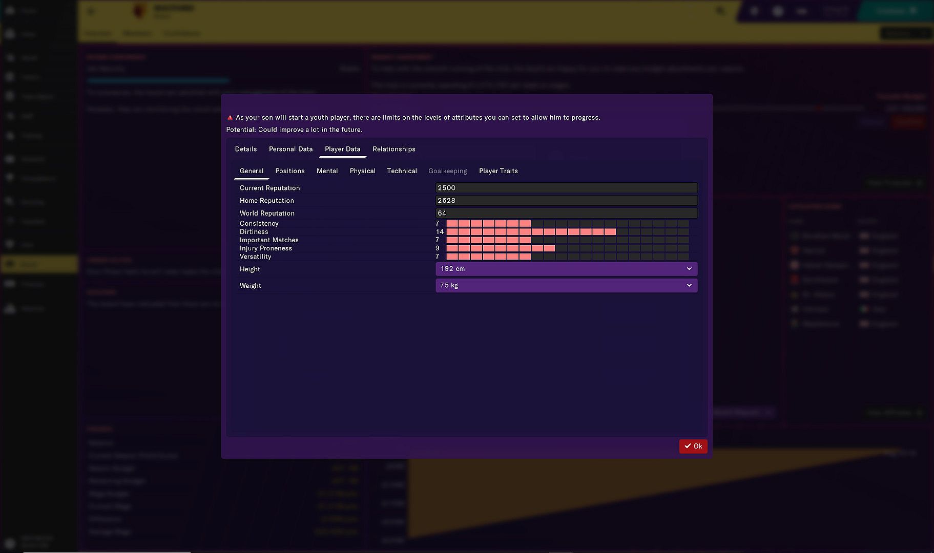 This generates a β€˜son’ into the squad of the club you are managing, and also enables you to customise their biographical data and playing attributes.