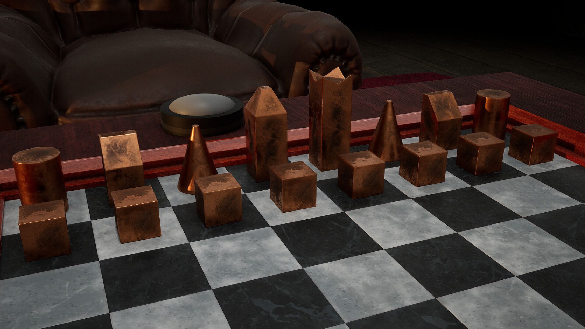 Chess pieces take shape from basic cubes and cylinders in this free-to-play casual chess DLC. Players equip their sets with these core primitive forms for a fresh take on the board. The pack delivers six distinct pieces built entirely from those simple geometries. Cubes and cylinders stack up endlessly in this lightweight expansion. Casual players grab it to mix up standard chess visuals without complexity. Perfect for anyone who enjoys straightforward, no-fuss board game tweaks on PC.