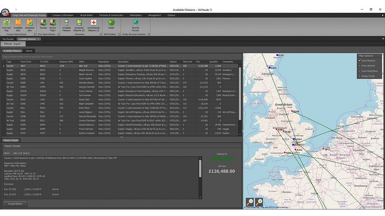 • Cargo jobs – more variety, better paid jobs, and much, much faster generation than in Air Hauler.