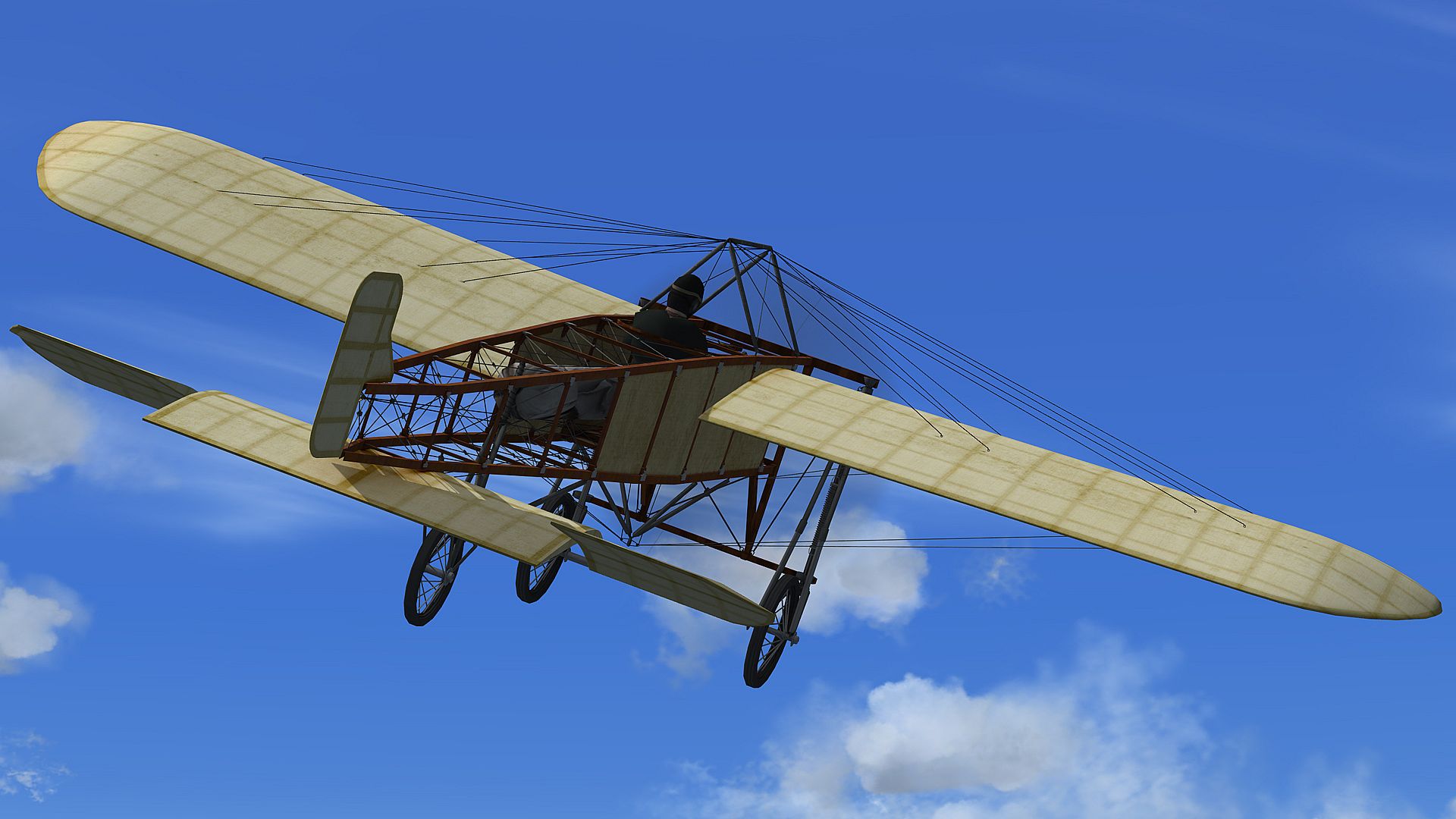 Join with the Wright Brothers and take to the air for a tour of Ohio in the iconic Model B aircraft or recreate the achievement of Louis Blériot in a death defying crossing of the English Channel in the Blériot XI monoplane. Strap yourself into the Santos-Dumont 14-bis and share the elation of performing the first unaided take-off of a heavier than air aircraft. The Goliescu Avioplan with its idiosyncratic design and equally unpredictable performance may be a challenge to fly but was the first aircraft to utilise a tubular design that paved the way for aircraft of today. The Handley Page E is widely acclaimed as the first passenger aircraft, although comfort was not an option with the passenger seated precariously behind the pilot in a small bucket seat open to the outside air!