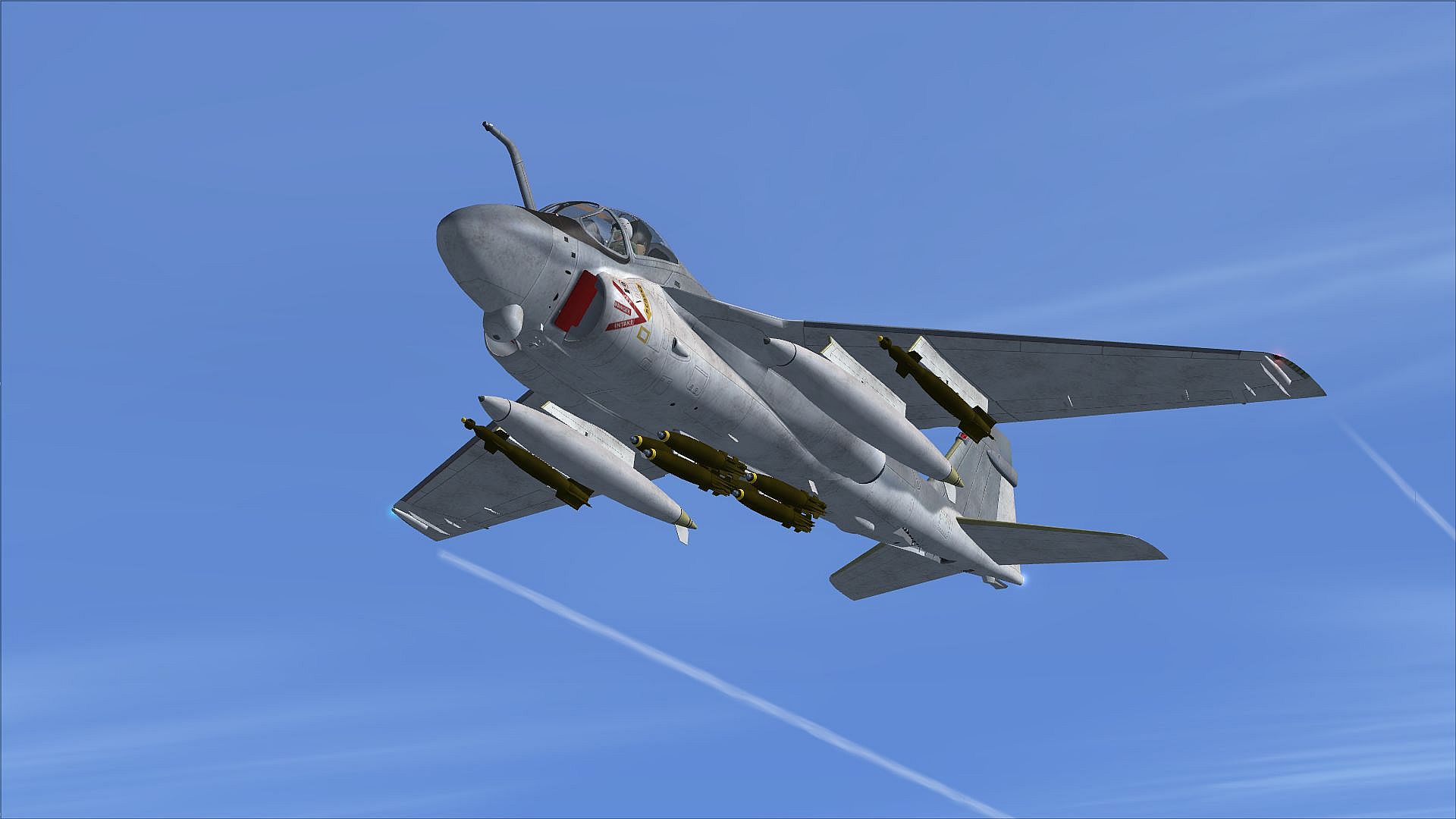 The Virtavia A-6E Intruder for FSX: Steam Edition contains animated features such as sliding canopy and access steps, tail hook, and folding wings. Additionally, this aircraft comes with virtual crew members you can toggle on and off.