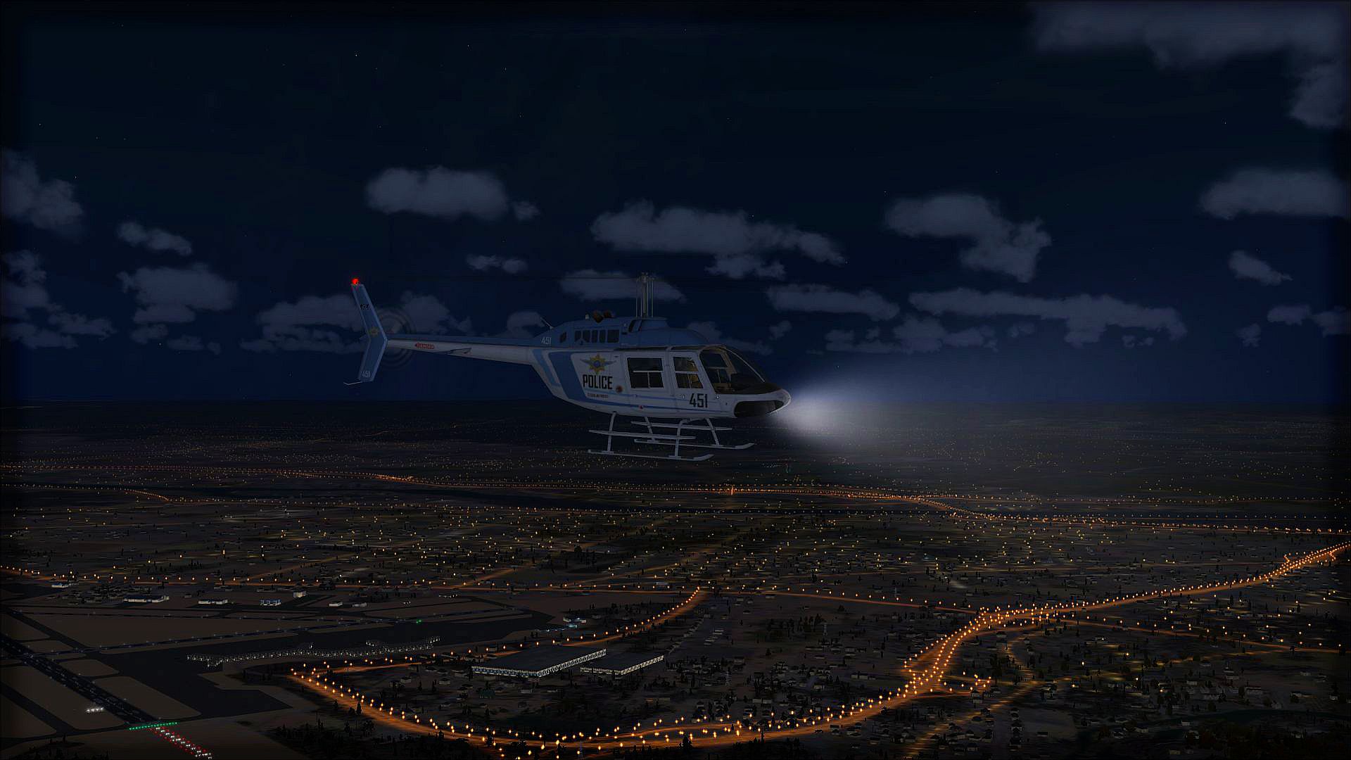 The Night Environment database contains more road data than default FSX: Steam Edition, so roads you may not see during the day become visible at night. All lights are visible for up to 60 miles for a more immersive experience. All highway lights are raised above the surface and have a lit bitmap below them, giving them a 3D feel.