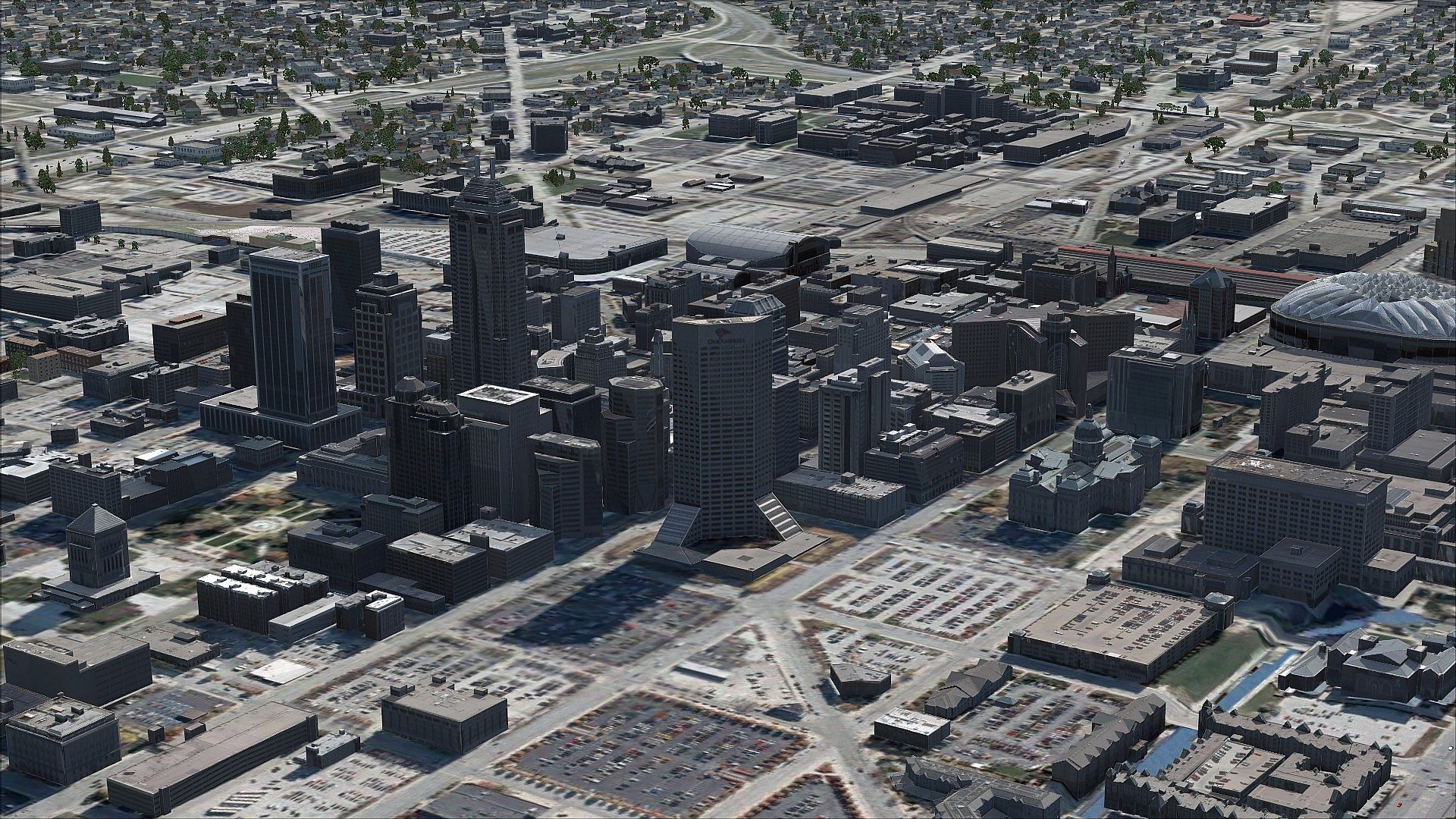 US Cities X: Indianapolis from Aerosoft covers the Indianapolis area in FSX:SE with extensive satellite coverage and includes all major buildings and thousands of accurately placed autogen buildings. There are nine detailed heliports, complete with sound effects, and the famous Indianapolis Speedway is also modeled.