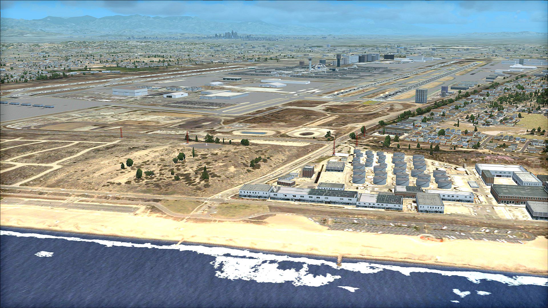 - Major airports in and around the city are covered with high res ground images with customized mesh terrain including: Los Angeles Int’l (KLAX), Burbank Bob Hope (KBUR), John Wayne Orange Co. (KSNA), Long Beach (KLGB), Van Nuys (KVNY), Catalina "Airport in the Sky" (KAVX - features new building structures), Santa Monica Municipal (KSMO) and many more!
