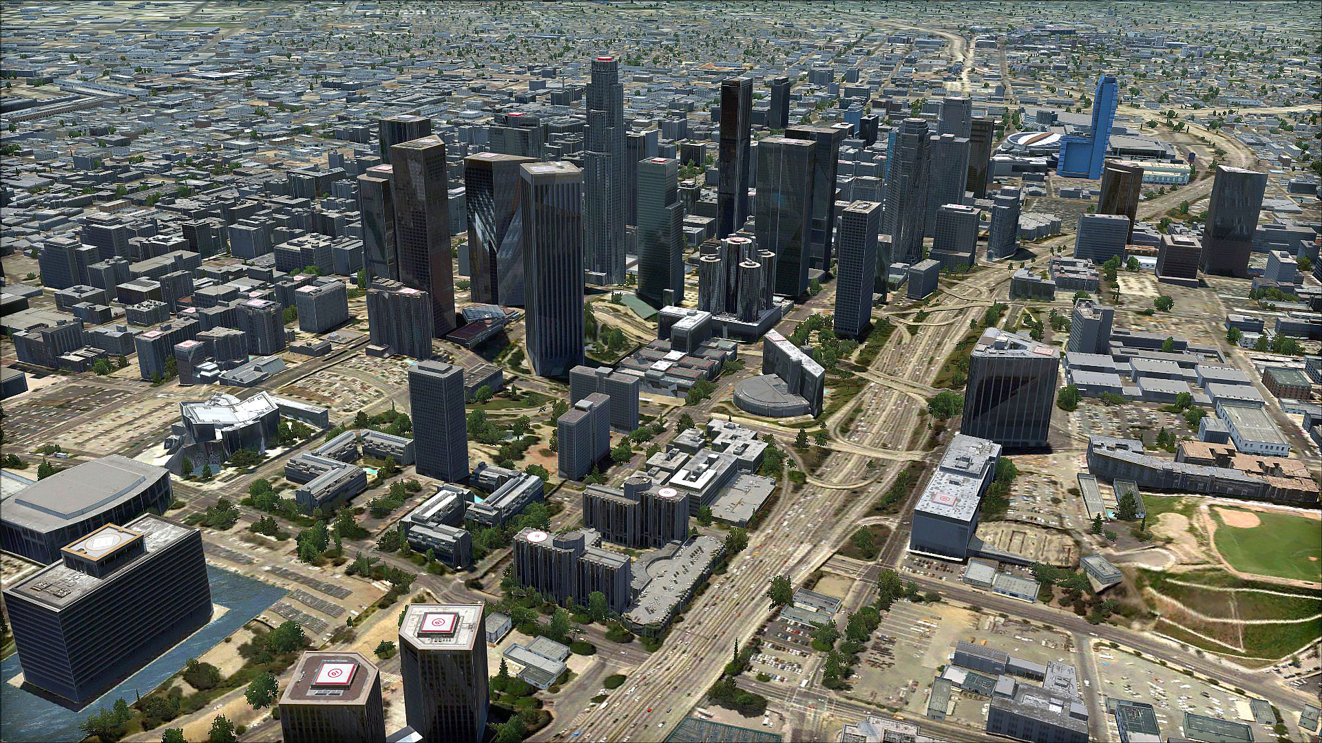 - Detailed 3D renderings of the 3 city centres covered by more than 5,000 major buildings including downtown Los Angeles, Long Beach, and Irvine/Santa Ana