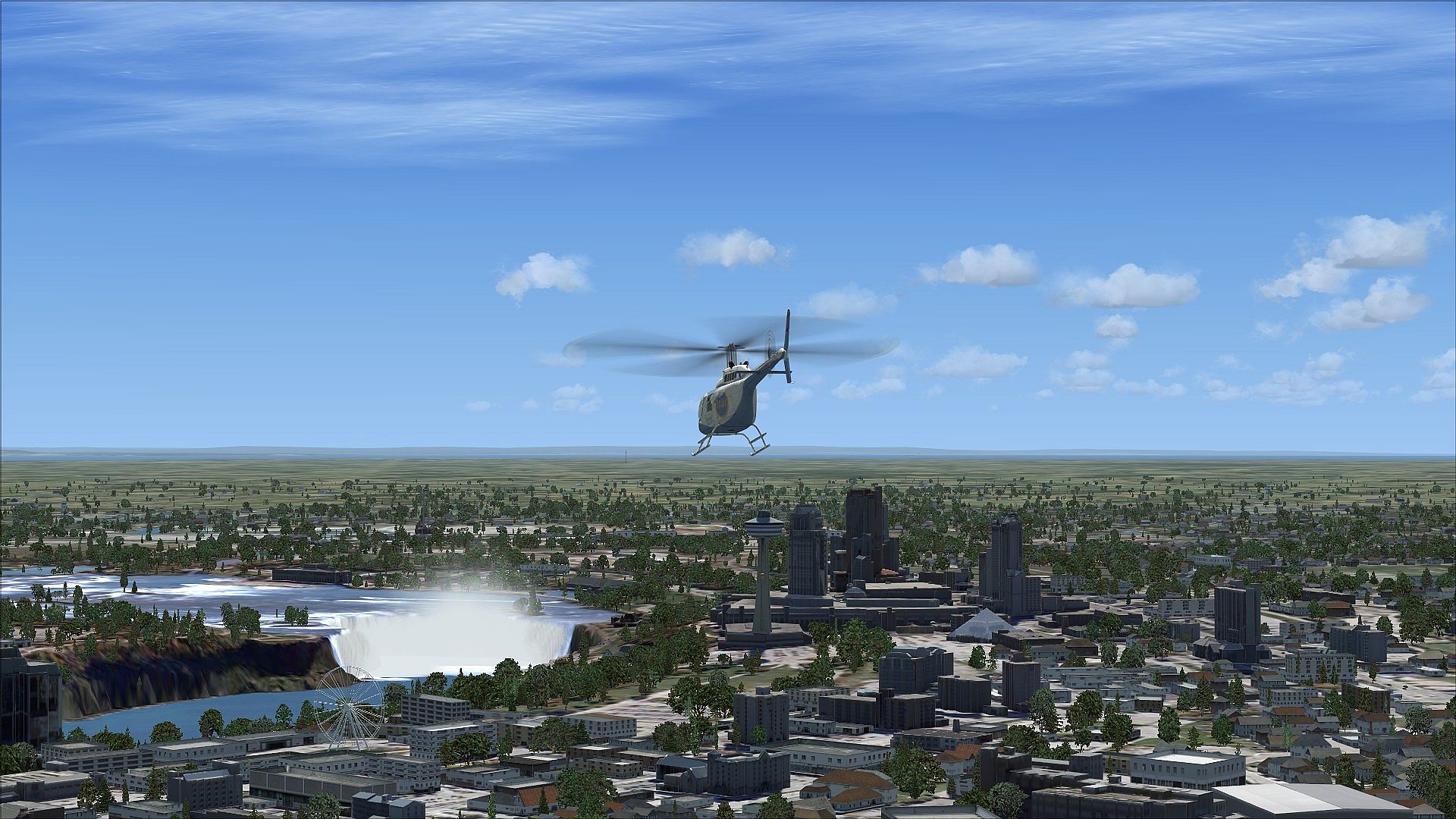 There are three main helipads in the scenery: the major one for sightseeing flights on the Canadian side, a smaller one very close to the Falls on the US side of the river and a medical rooftop pad on the Women and Children’s Hospital in Buffalo. Furthermore, the package includes a number of international airports and small airfields in the area in nice detail.