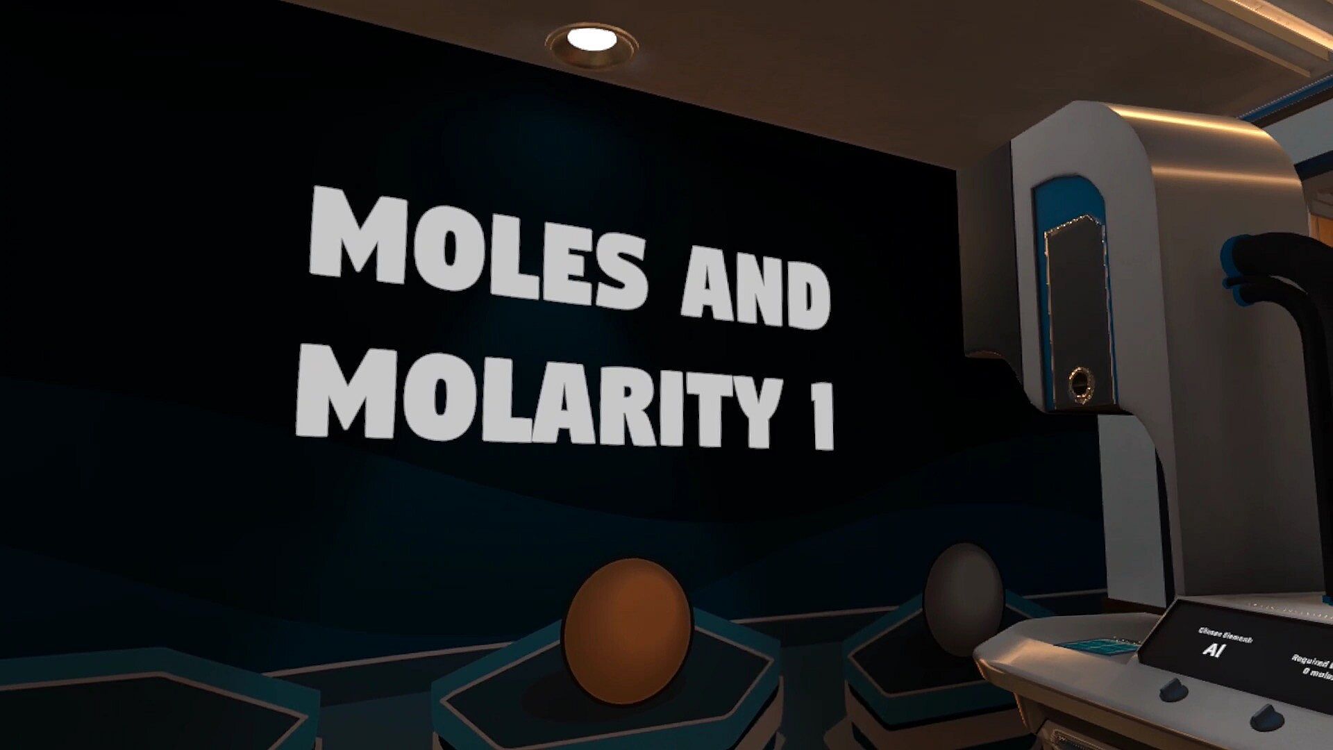 Curriculum fit: Moles & Molarity are taught in the curriculum of 8th grade Basic Chemistry in most countries. However, the VR lesson can be enjoyed by players of any age wishing to learn.