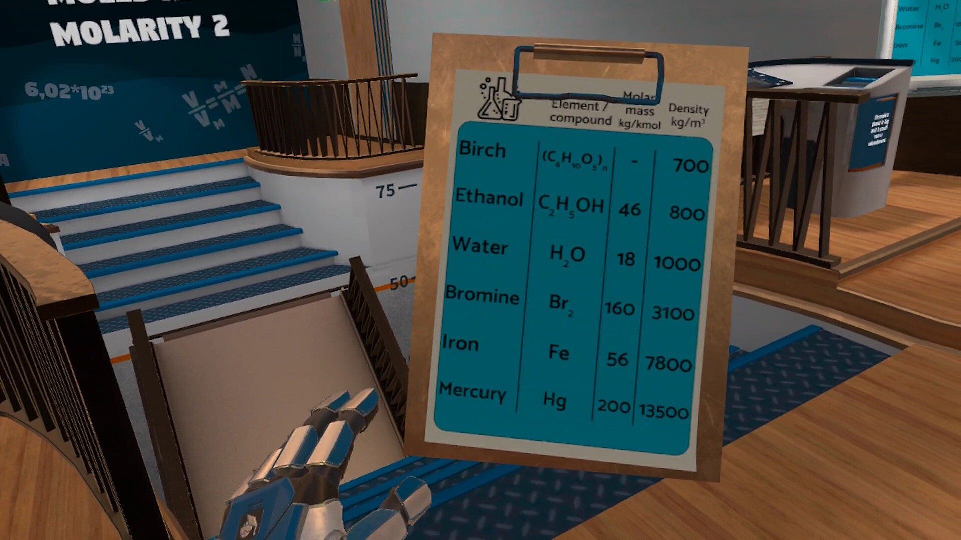 Curriculum fit: Moles & Molarity are taught in the curriculum of 8th grade Basic Chemistry in most countries. However, the VR lesson can be enjoyed by players of any age wishing to learn.