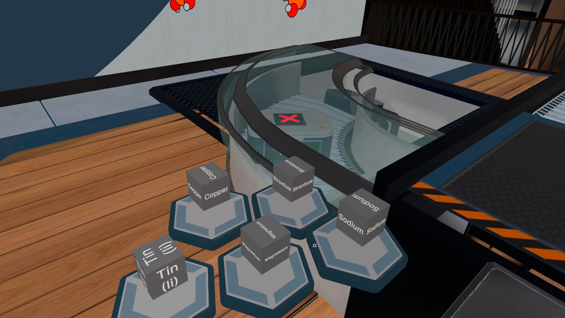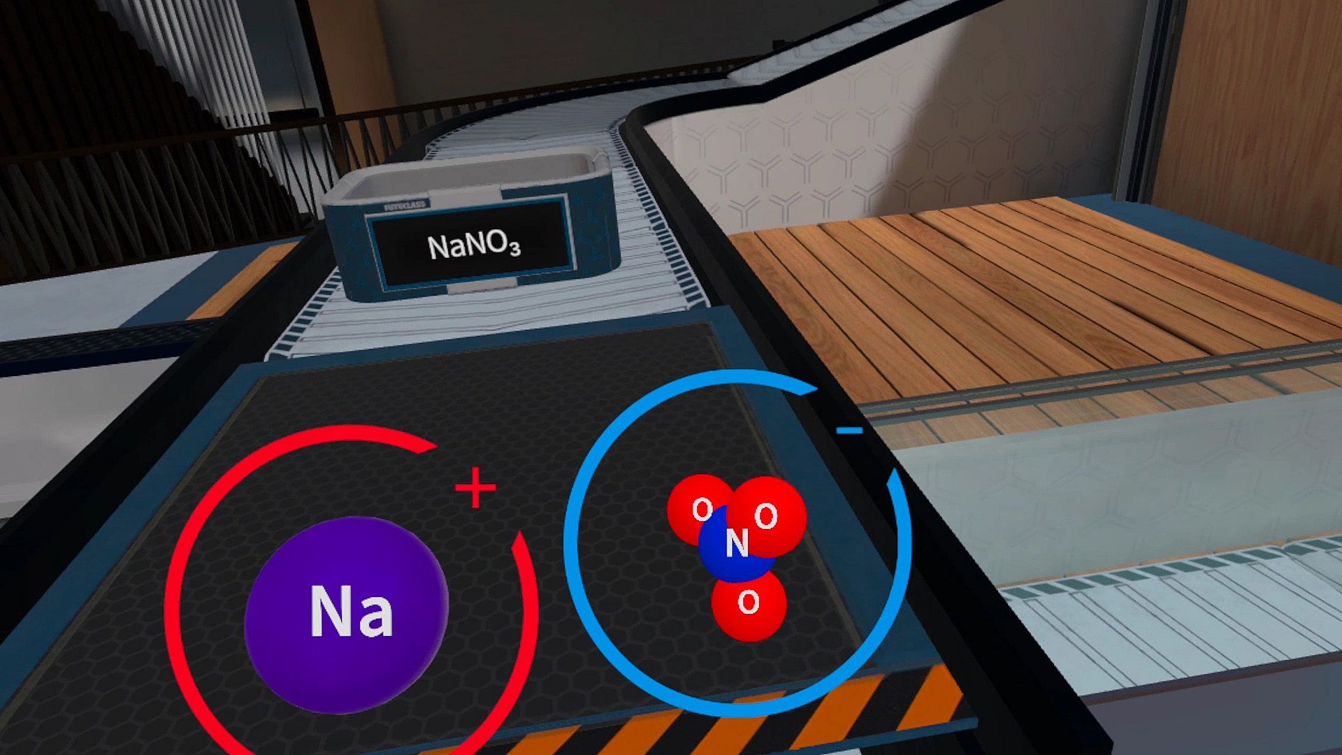 Salts VR lesson requires the player to identify salts written on each crate and "assemble" them using available ions.